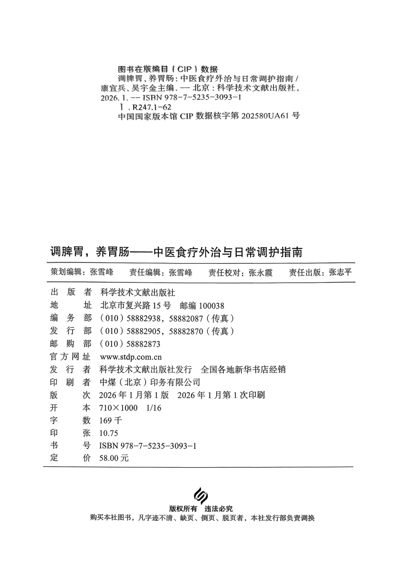 调脾胃 养胃肠 中医食疗外治与日常调护指南 康宜兵 吴宇金 针对不同人群 季节 疾病给出了相应的脾胃调养方案科学技术文献出版社