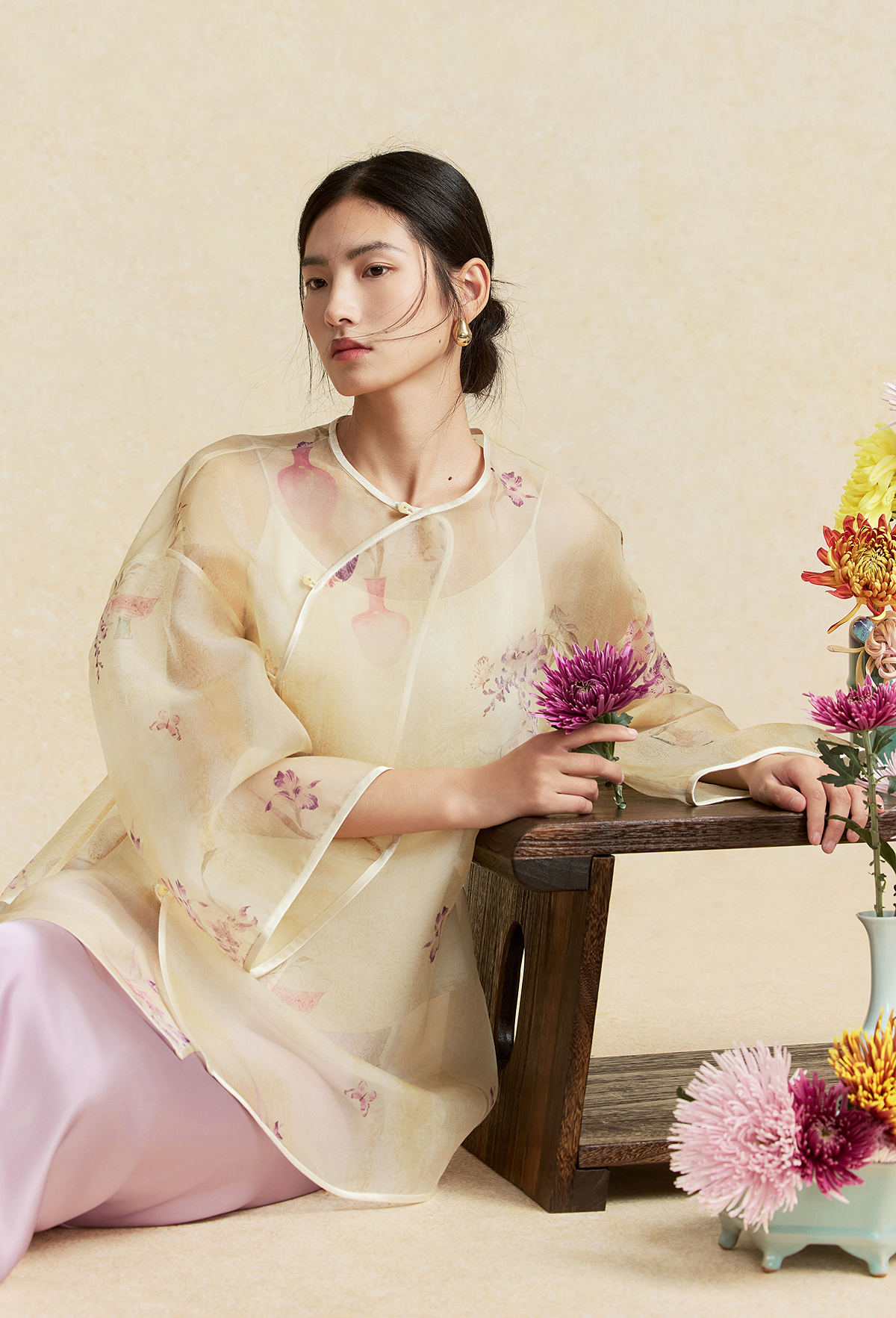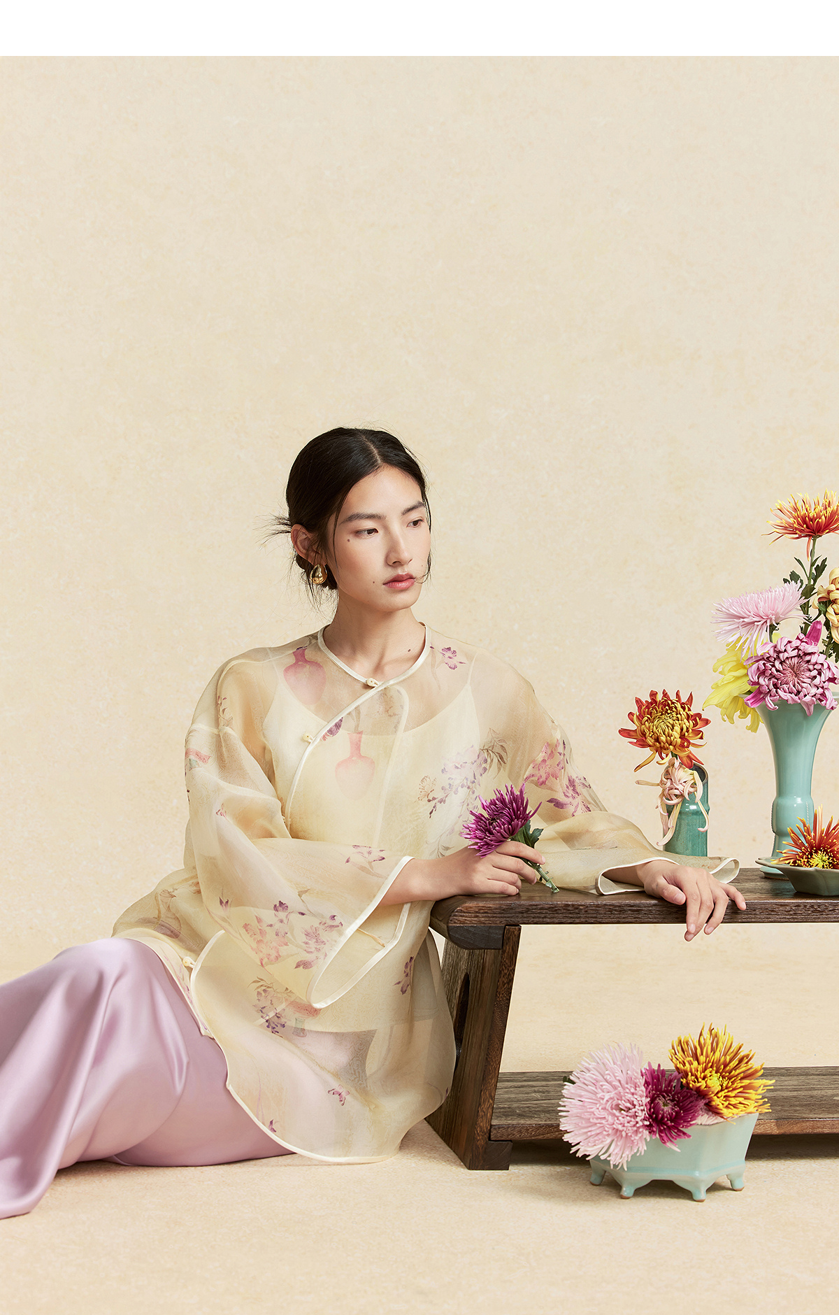 【林栖设计小店】卷草入画|桑蚕丝印花新中式仙气2026春新款真丝衫套组1961085
