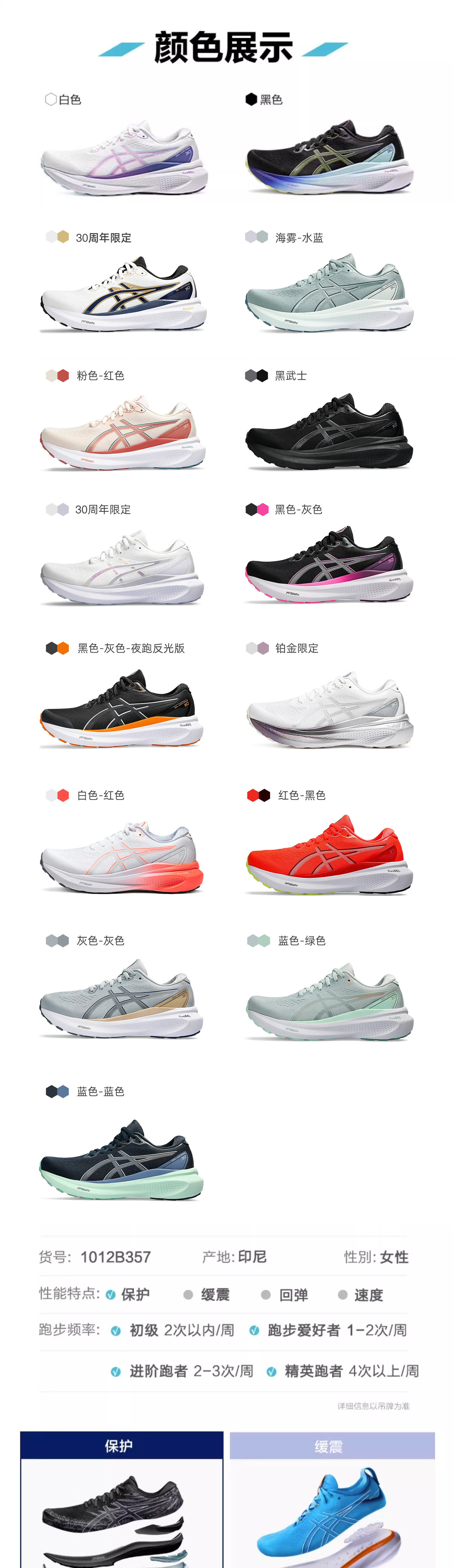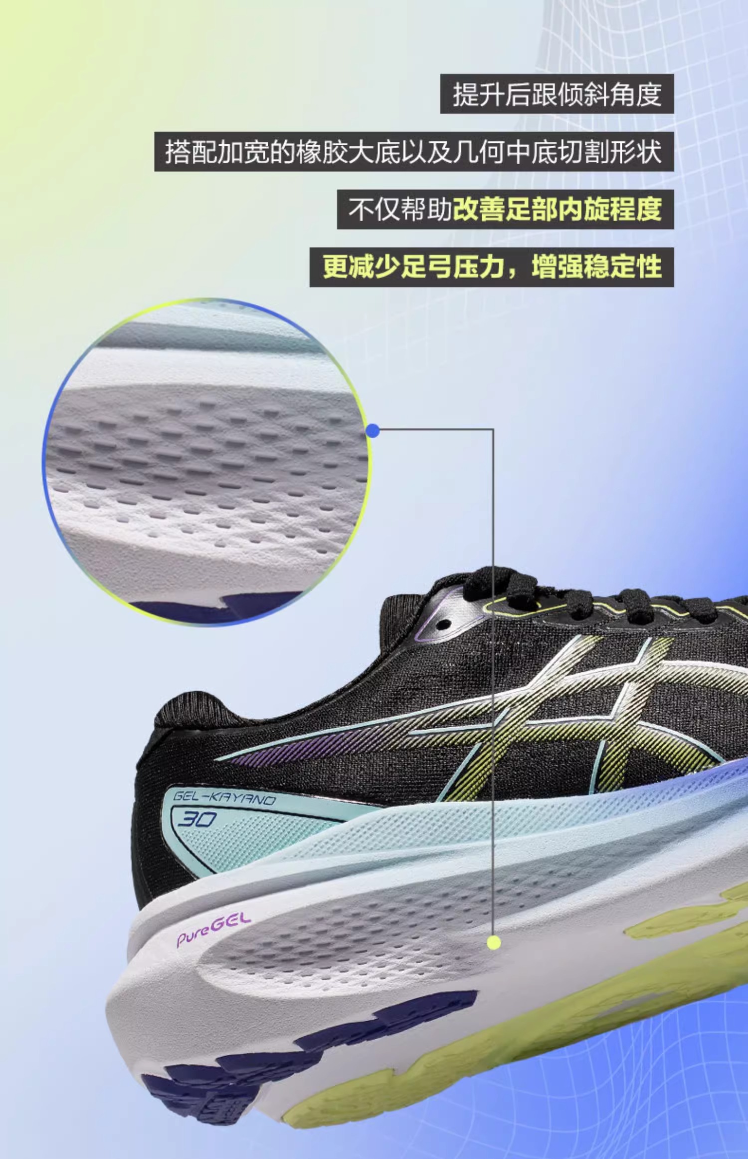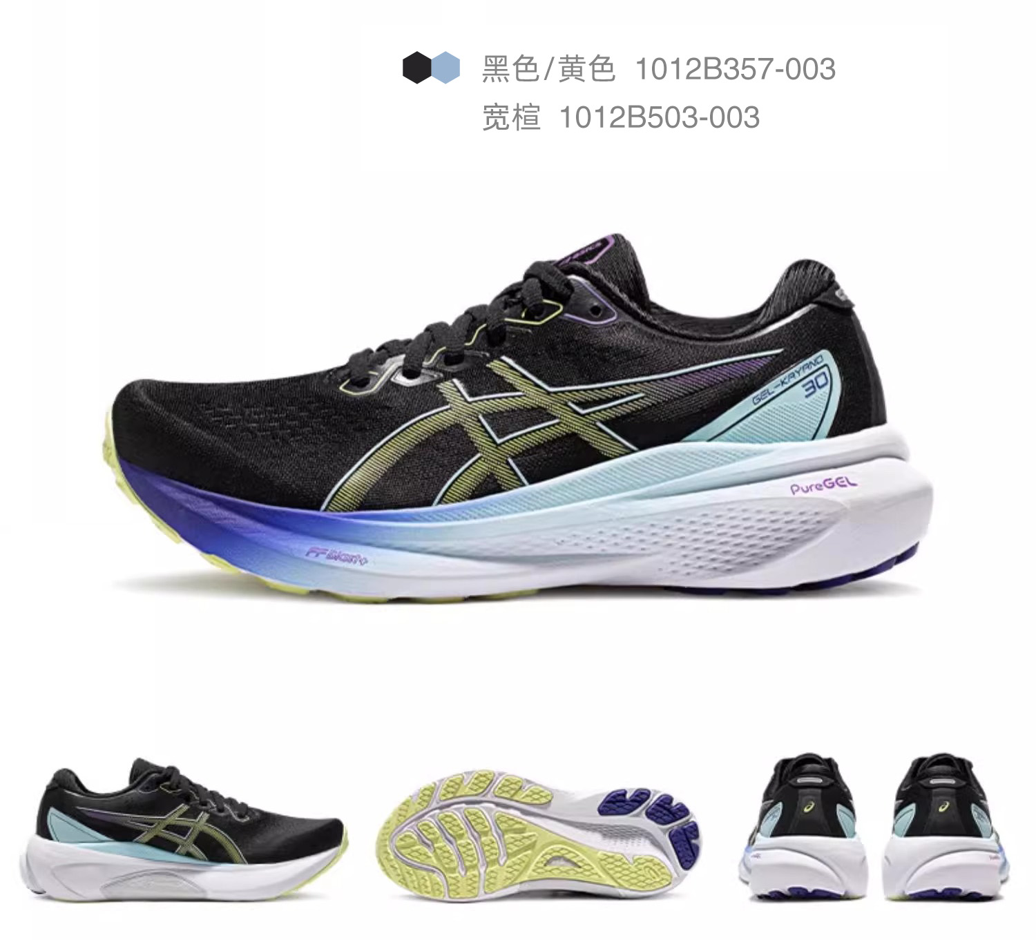 ASICS亚瑟士Kayano30女款黑武士稳定支撑跑鞋K30轻量升级缓震运动鞋