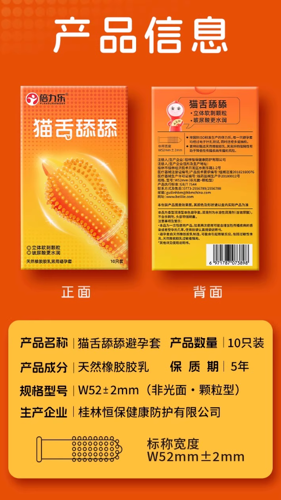 倍力乐猫舌避孕套立体软刺颗狼牙套粒安全套byt玻尿酸水润滑计生性用品 【新品猫舌】舔出水10只装
