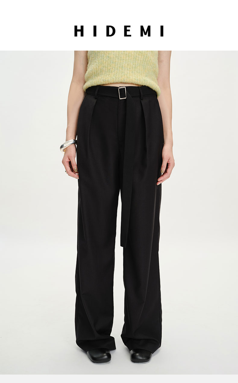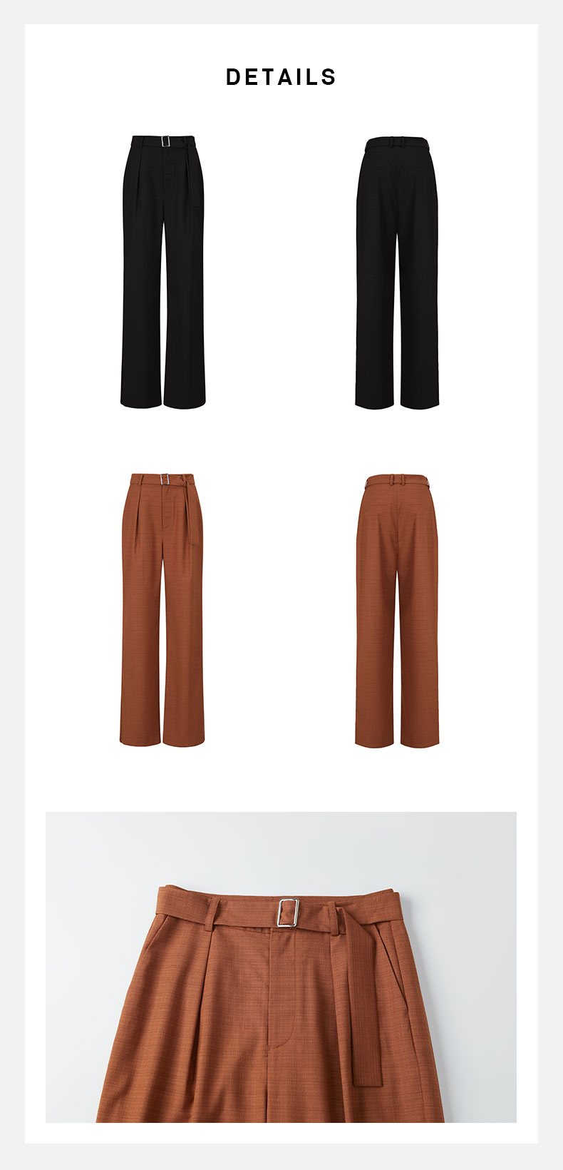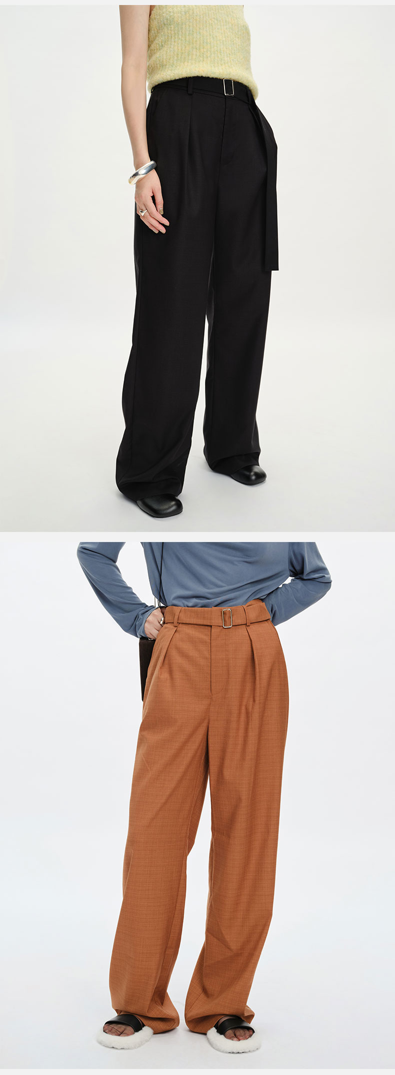 HIDEMI极简可拆卸腰带设计感阔腿裤 黑色/橘棕拿铁