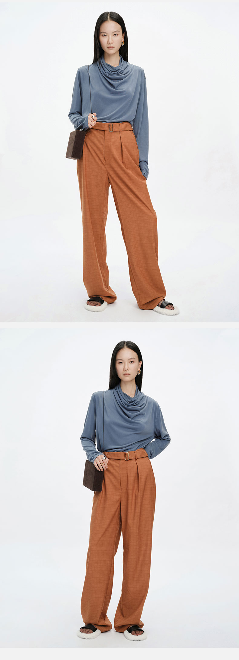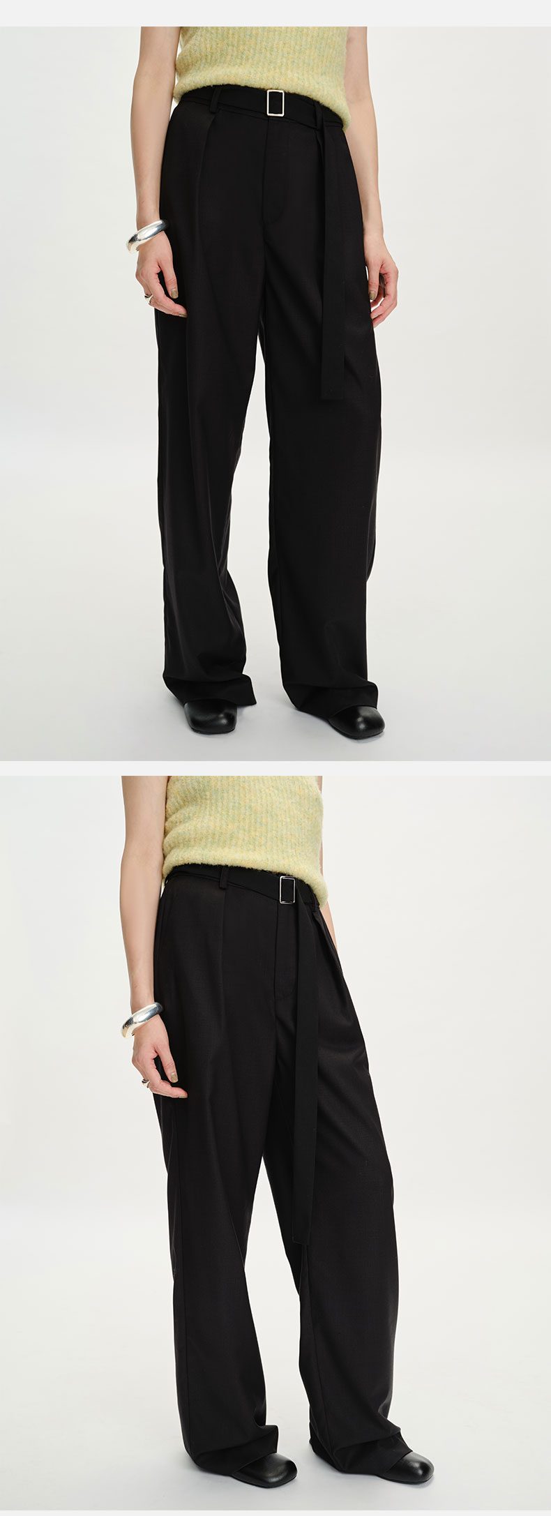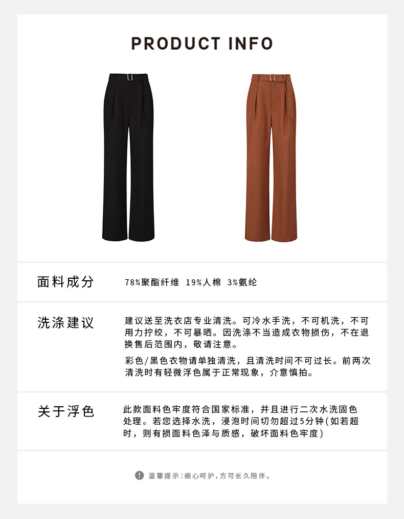 HIDEMI极简可拆卸腰带设计感阔腿裤 黑色/橘棕拿铁