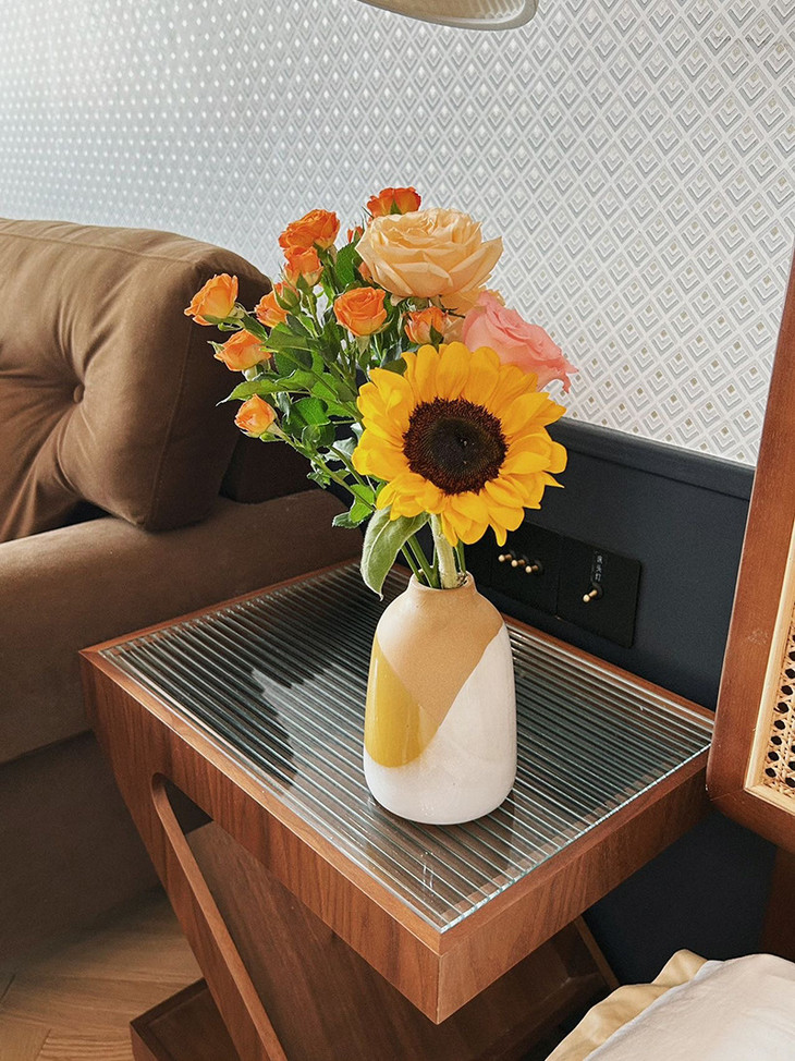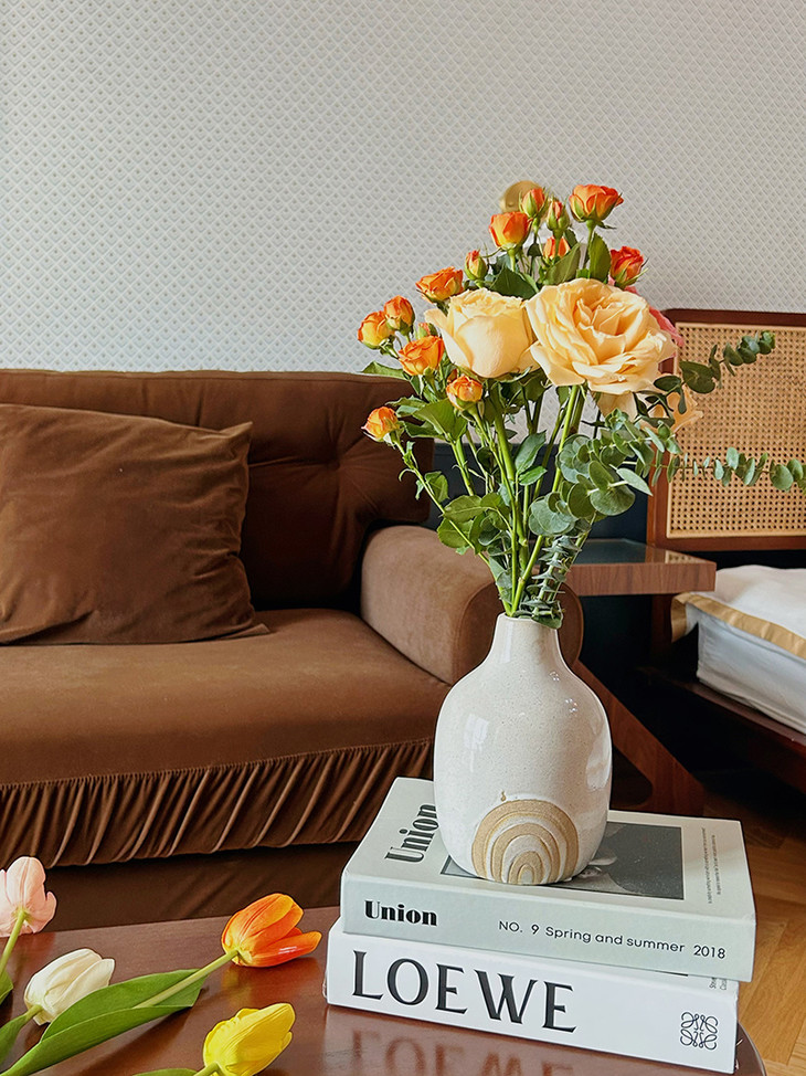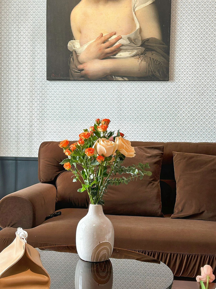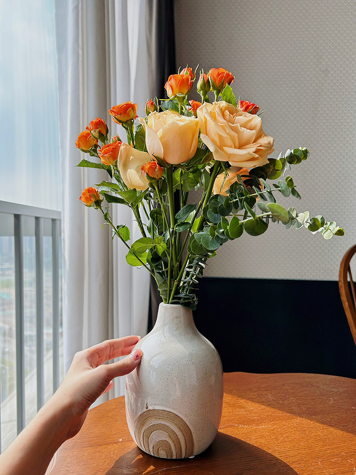总是忙忙碌碌的你或许可以选择放下烦恼 泡上一杯茶,靠在柔软的沙发上 享受岁月的美好与宁静,看家中绽放的花朵 浪漫自有留处~ 🔺这个花瓶实在是太太太漂亮了! 素雅的颜色不抢花花的主角地位 却能起到极好的衬托作用 温温柔柔的,与花一起组成一副画 自由,自然,浪漫,休闲 美得清新脱俗、与众不同