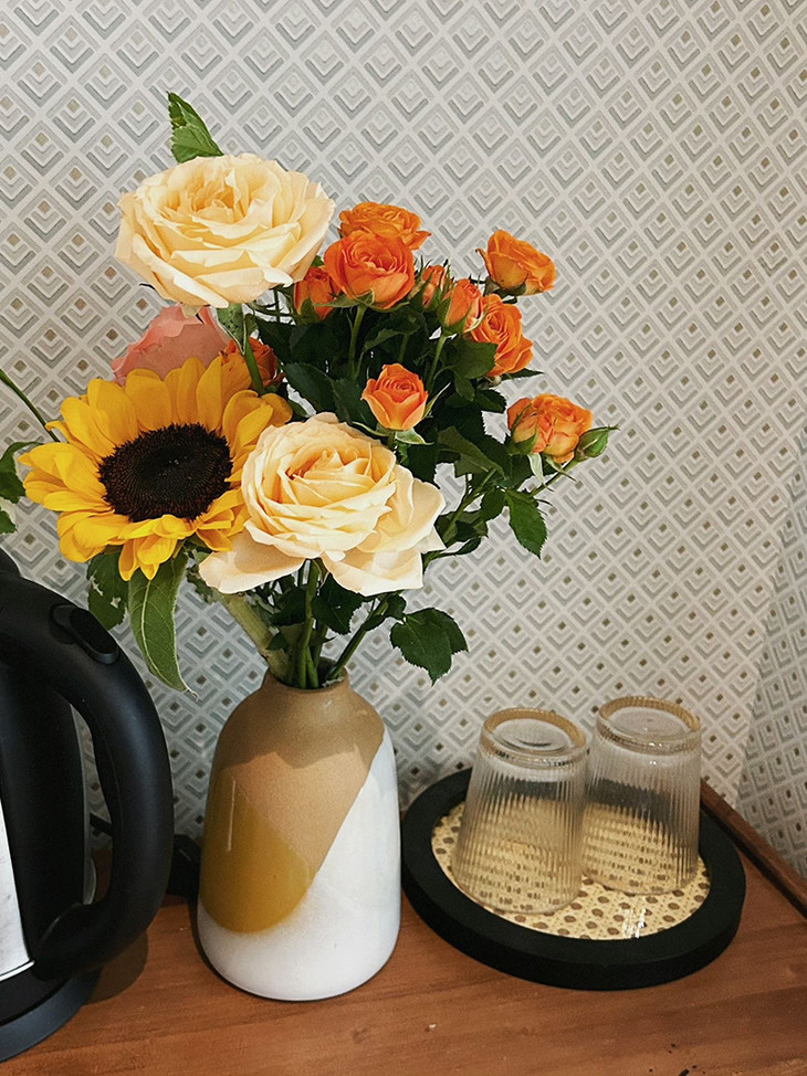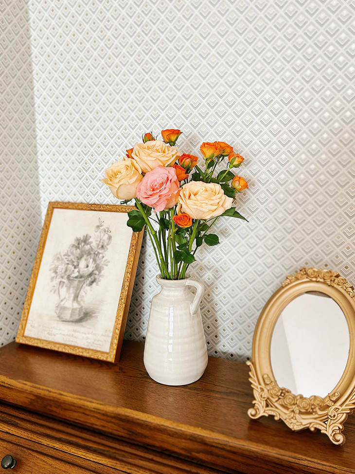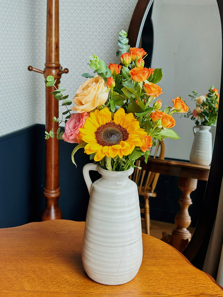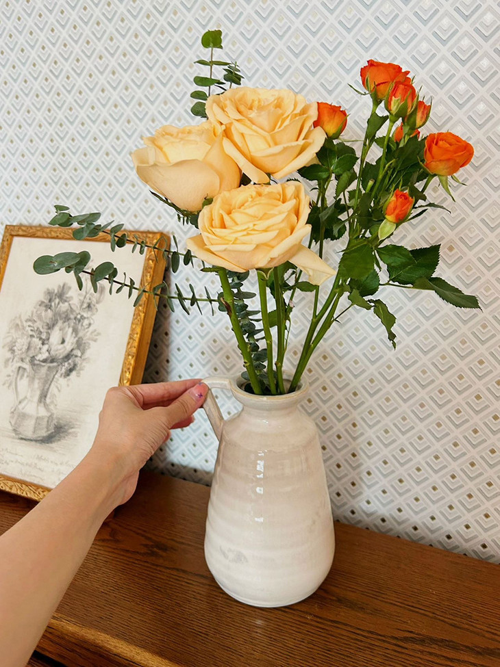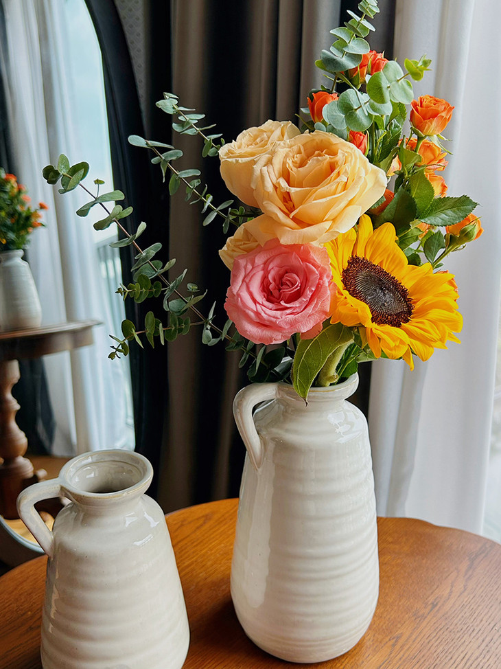 总是忙忙碌碌的你或许可以选择放下烦恼 泡上一杯茶,靠在柔软的沙发上 享受岁月的美好与宁静,看家中绽放的花朵 浪漫自有留处~ 🔺这个花瓶实在是太太太漂亮了! 素雅的颜色不抢花花的主角地位 却能起到极好的衬托作用 温温柔柔的,与花一起组成一副画 自由,自然,浪漫,休闲 美得清新脱俗、与众不同