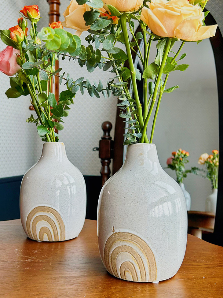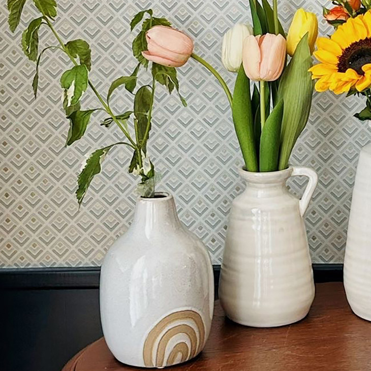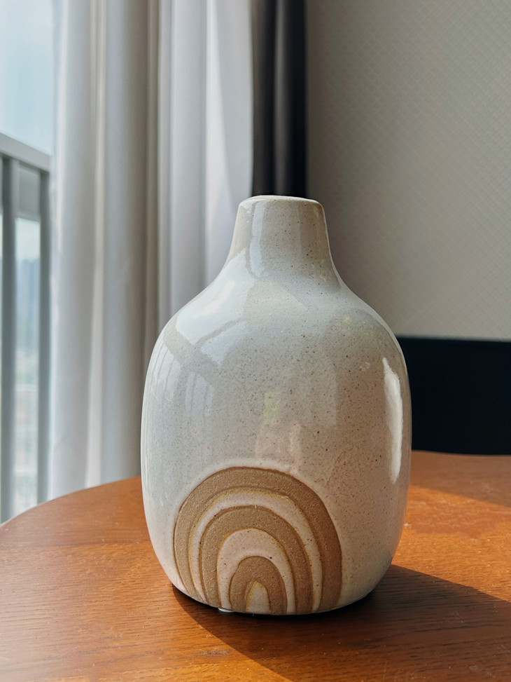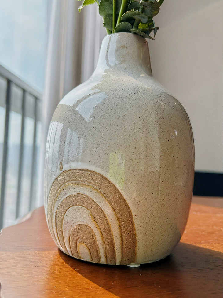 💖💖款式二【土陶波纹装饰美人肩瓶】 尺寸:13*13*18(cm) 波浪点缀装饰充满设计巧思 散发着油画般的静谧质感
