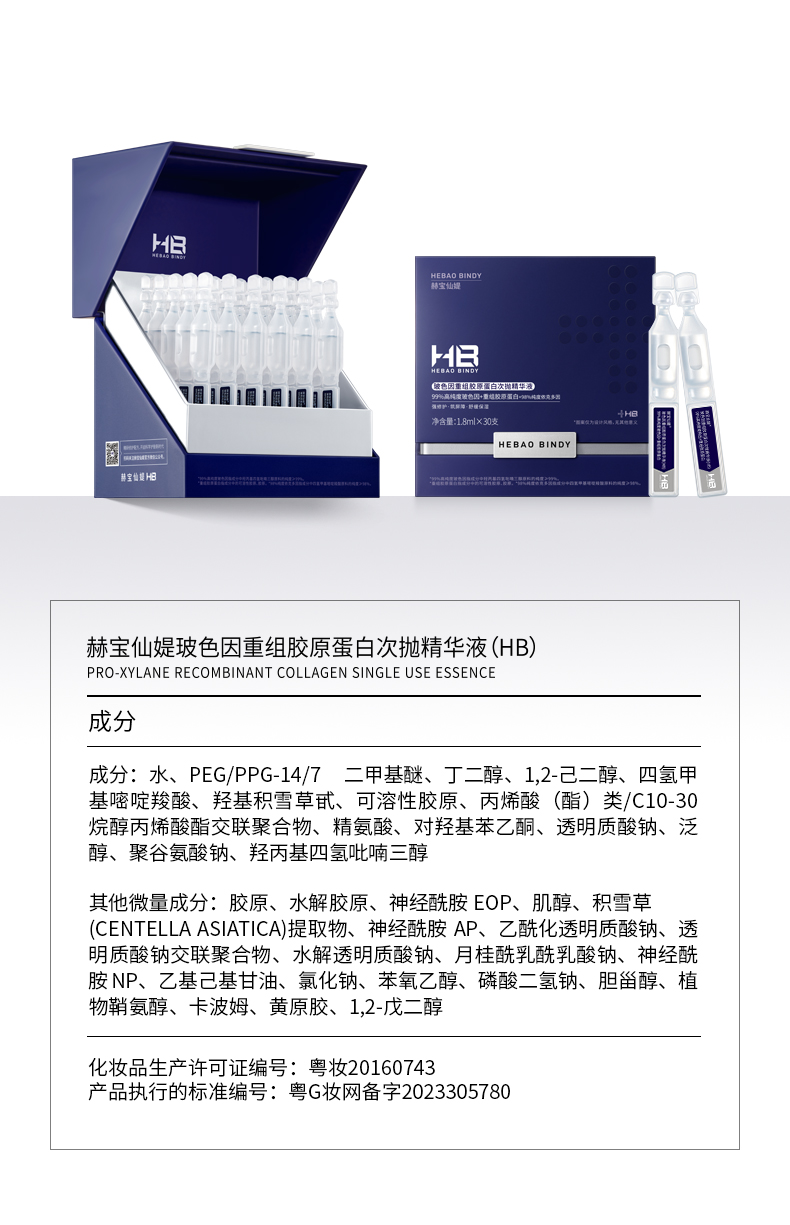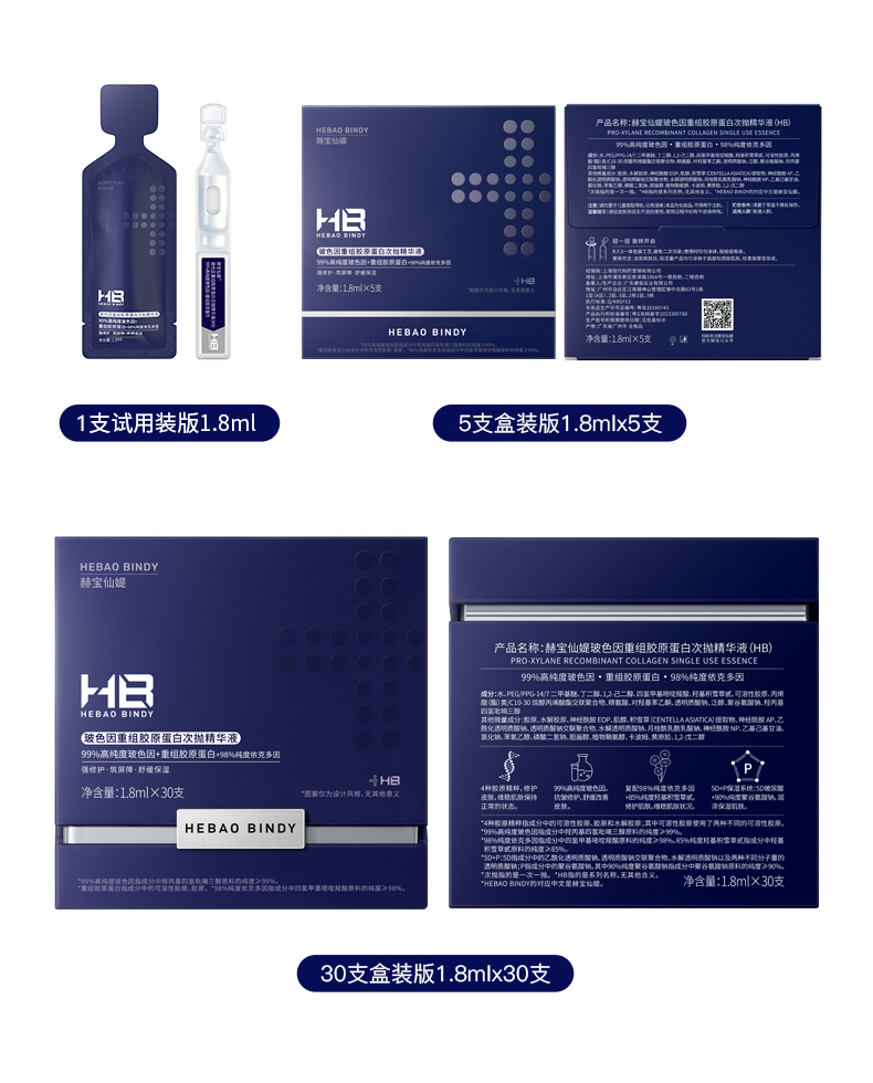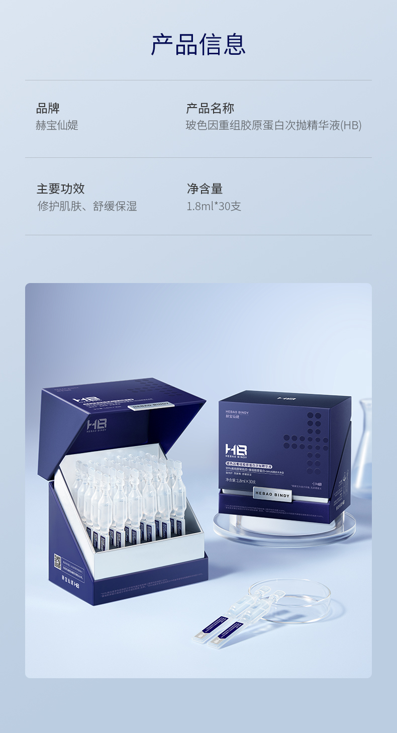 [小滋心选]【活动价¥11.9/5支 ¥59.9/30支*1盒 ¥99.9/30支*2盒】赫宝仙媞 玻色因重组胶原蛋白次抛精华液