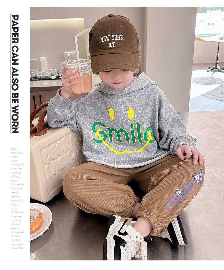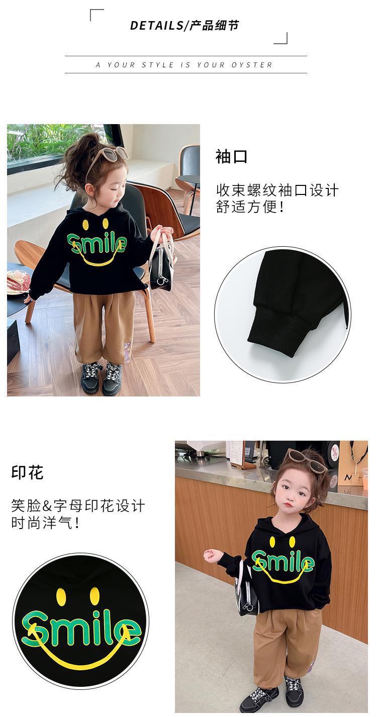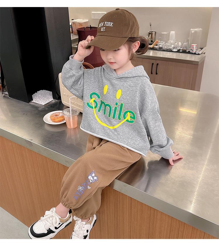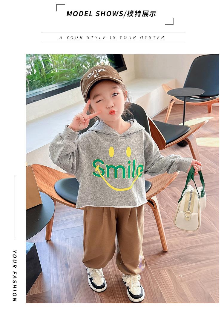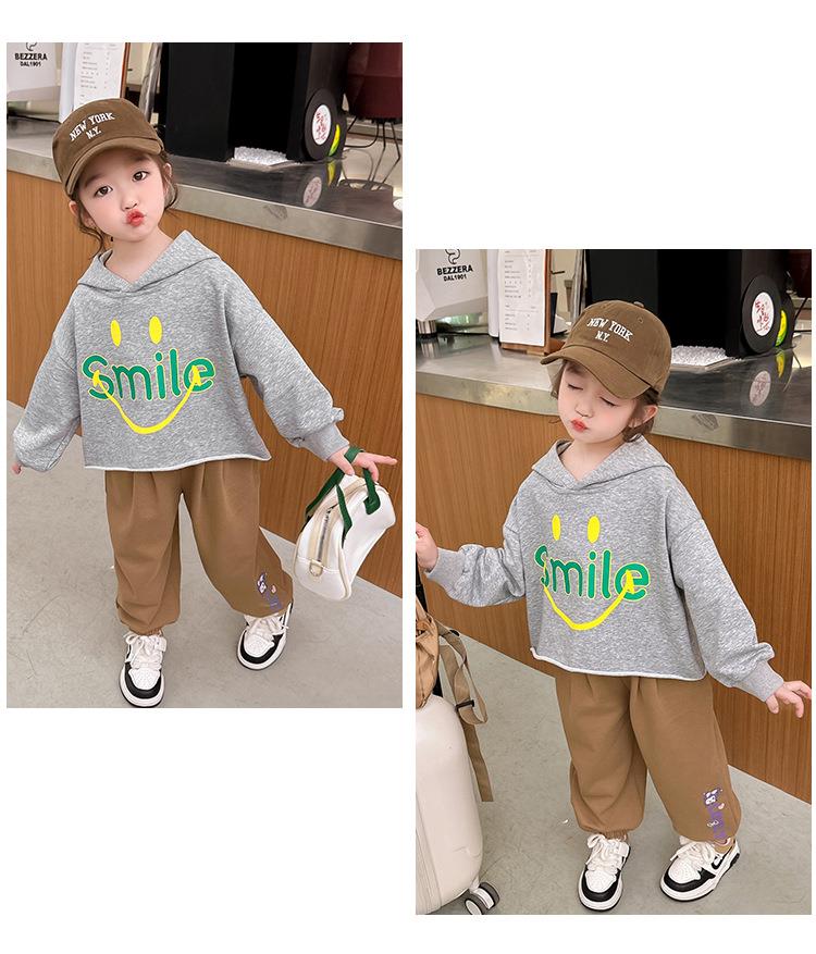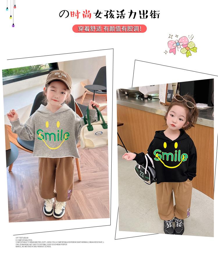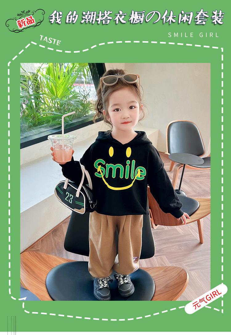 女童笑脸卫衣套装2024春季新款韩版两件套洋气网红童装潮