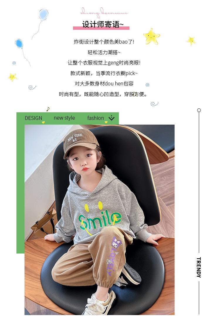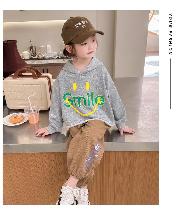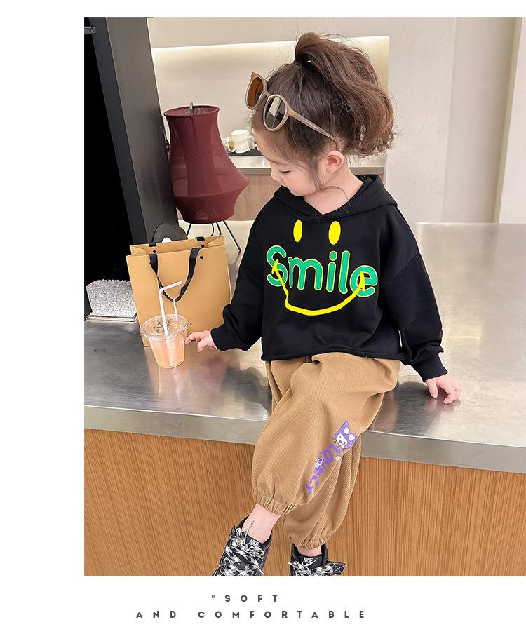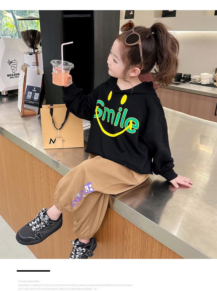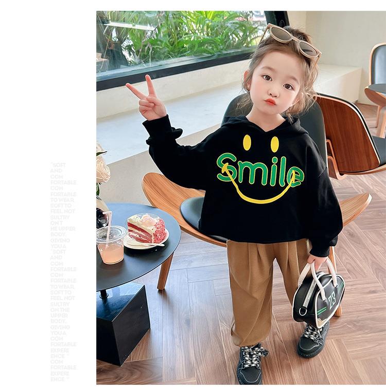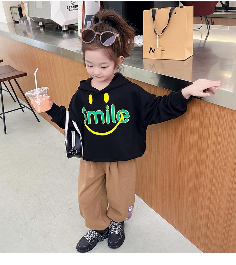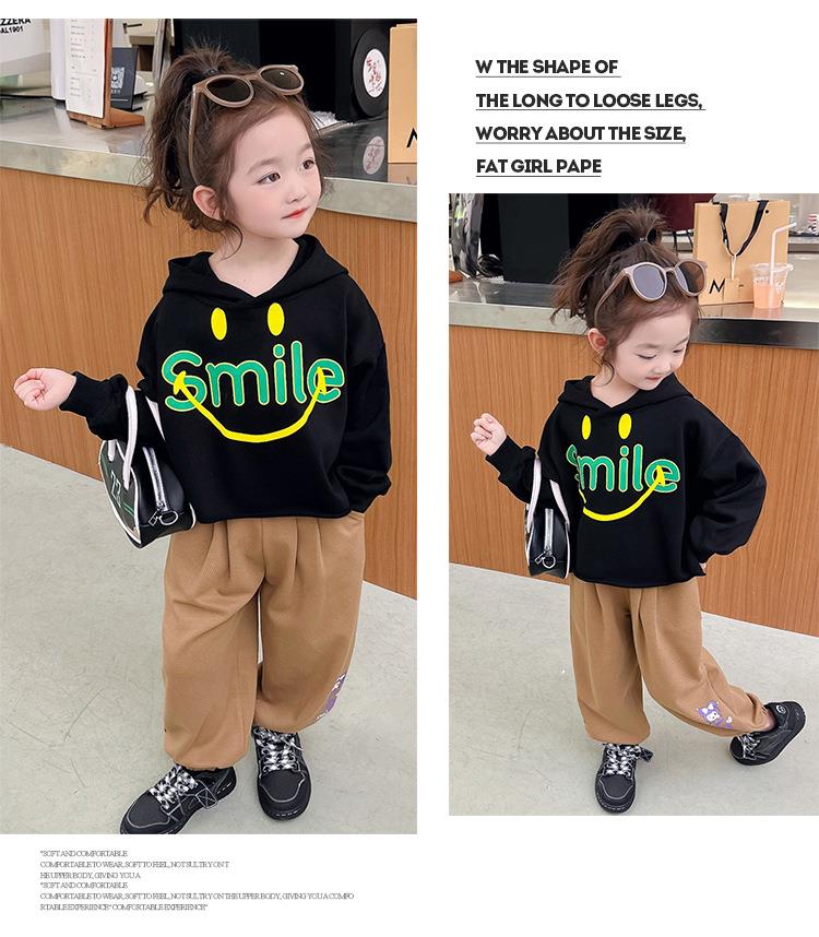 女童笑脸卫衣套装2024春季新款韩版两件套洋气网红童装潮