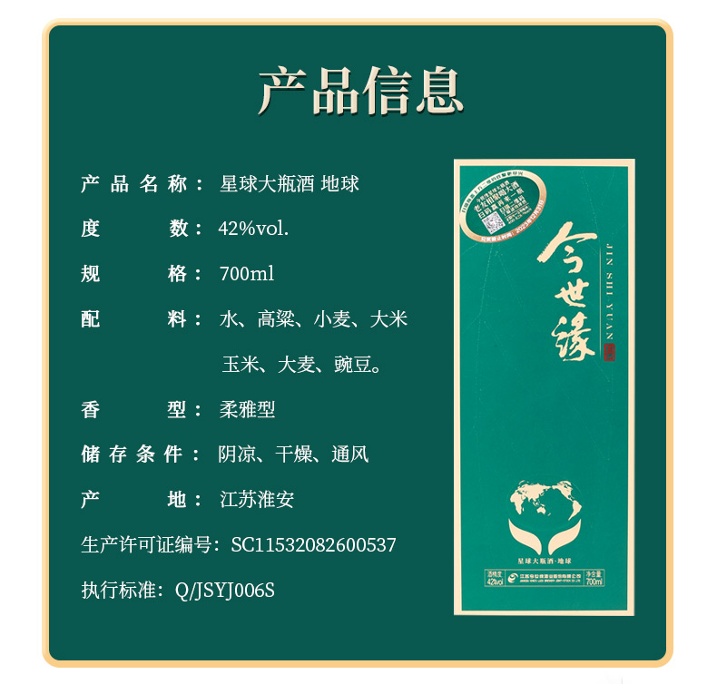 【酒厂直营】今世缘星球 大地球 42度700ml 单瓶装