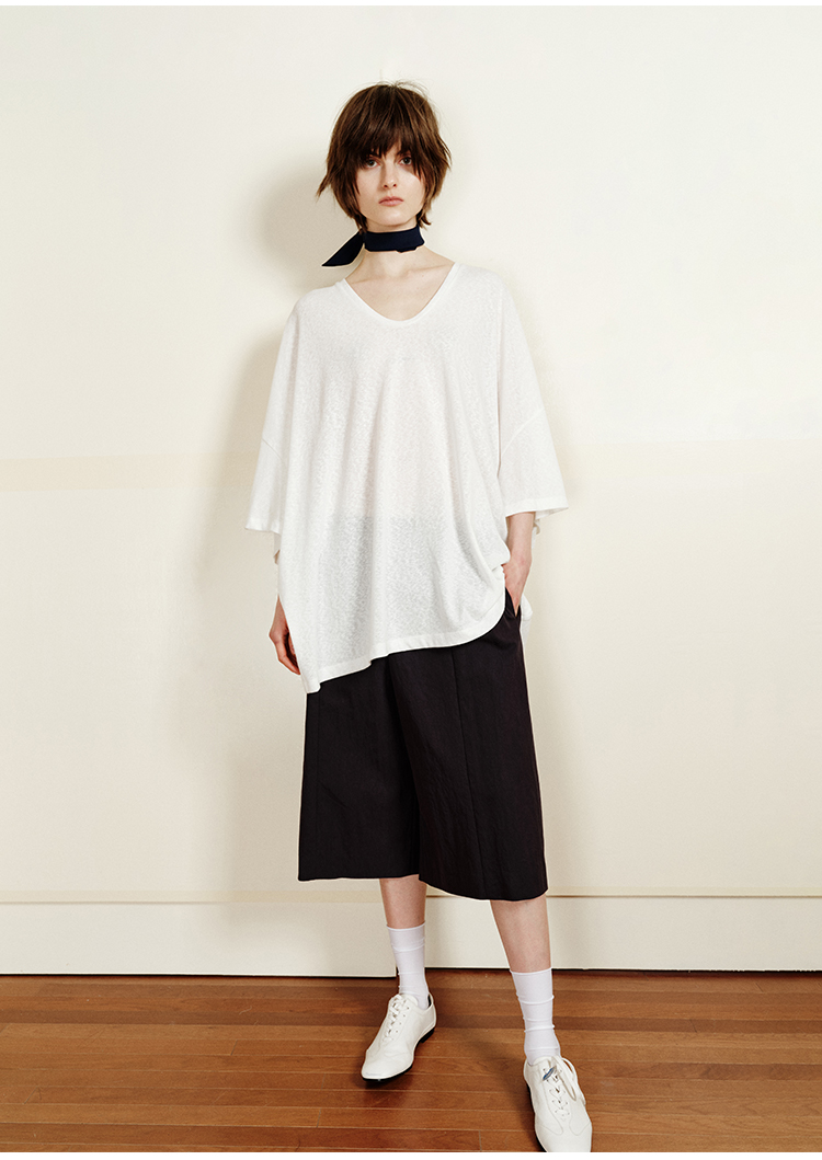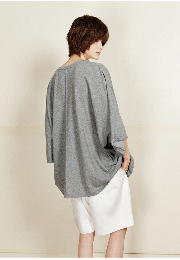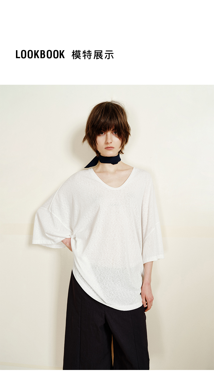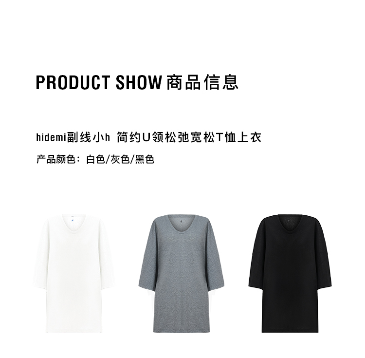 hidemi副线小h 简约U领松弛宽松T恤上衣