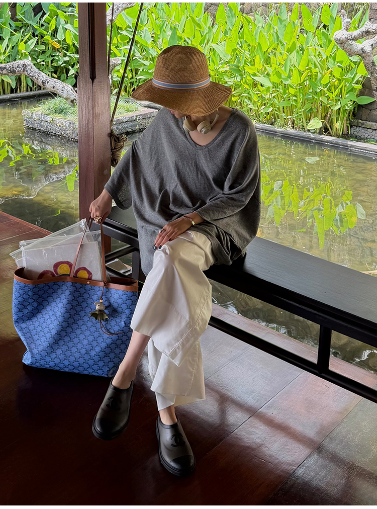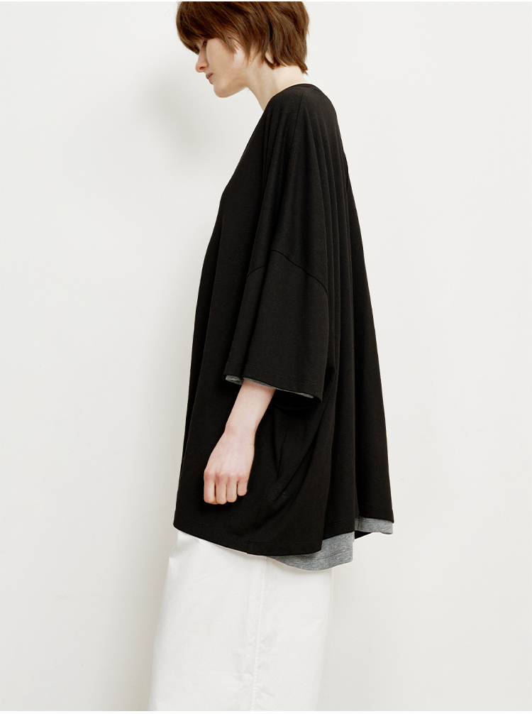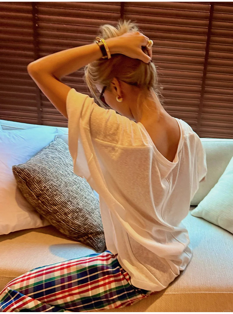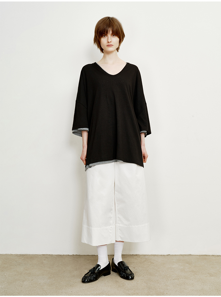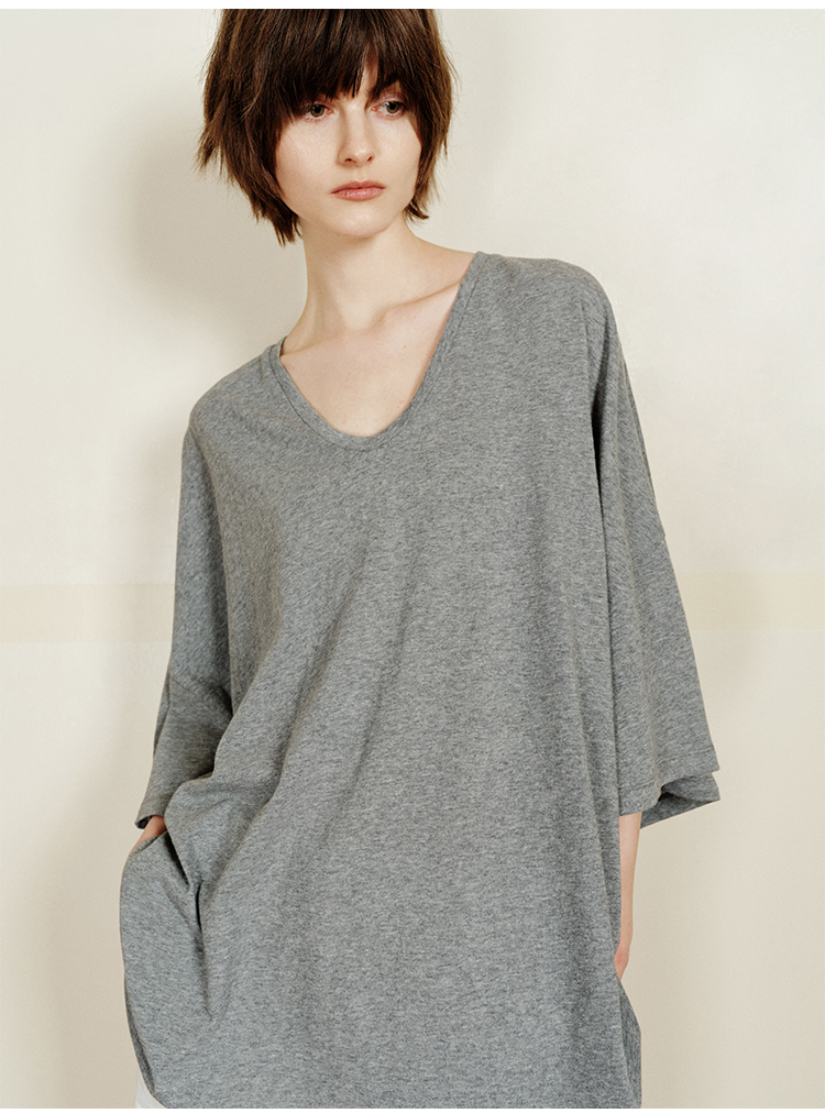 hidemi副线小h 简约U领松弛宽松T恤上衣