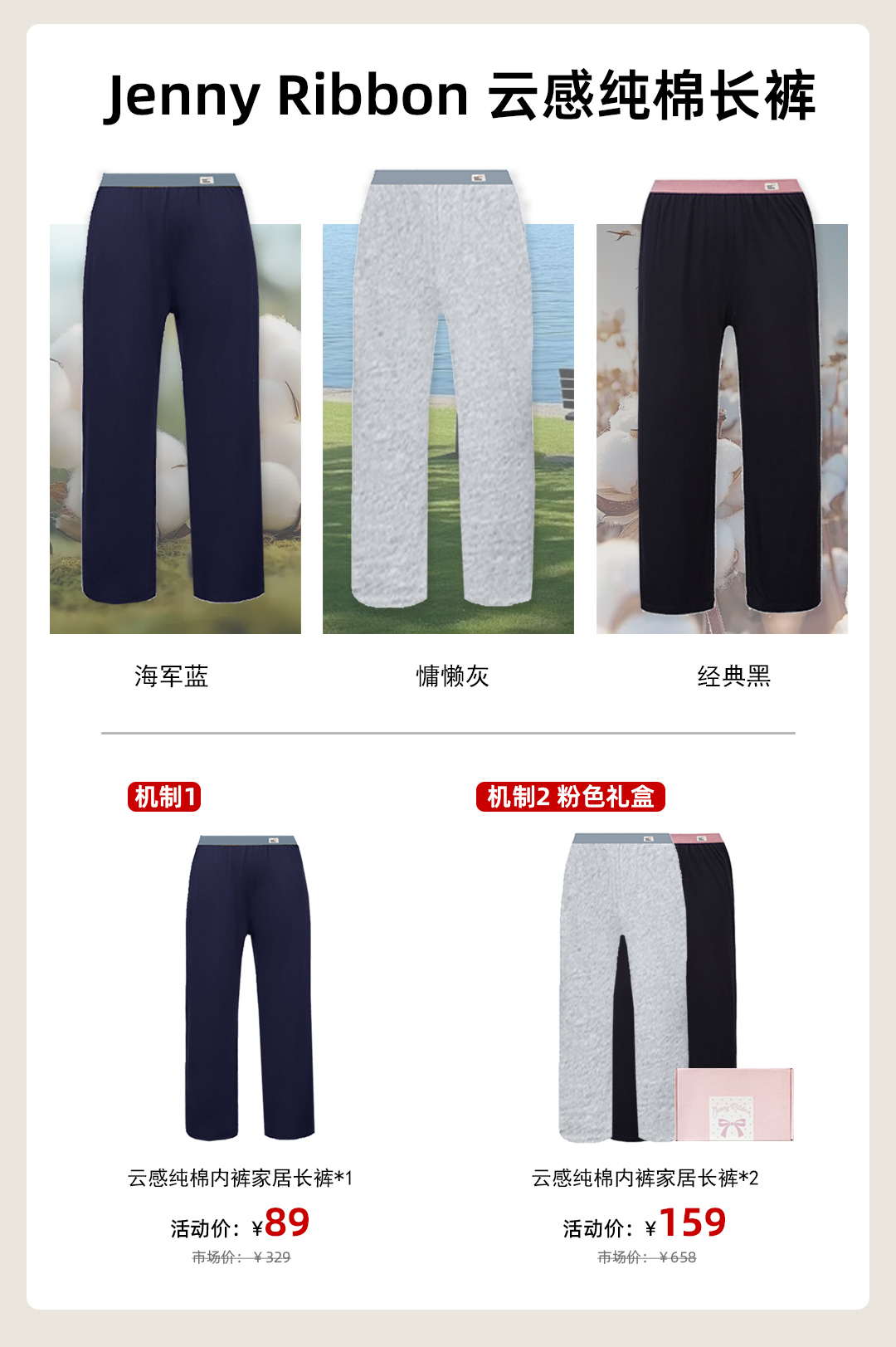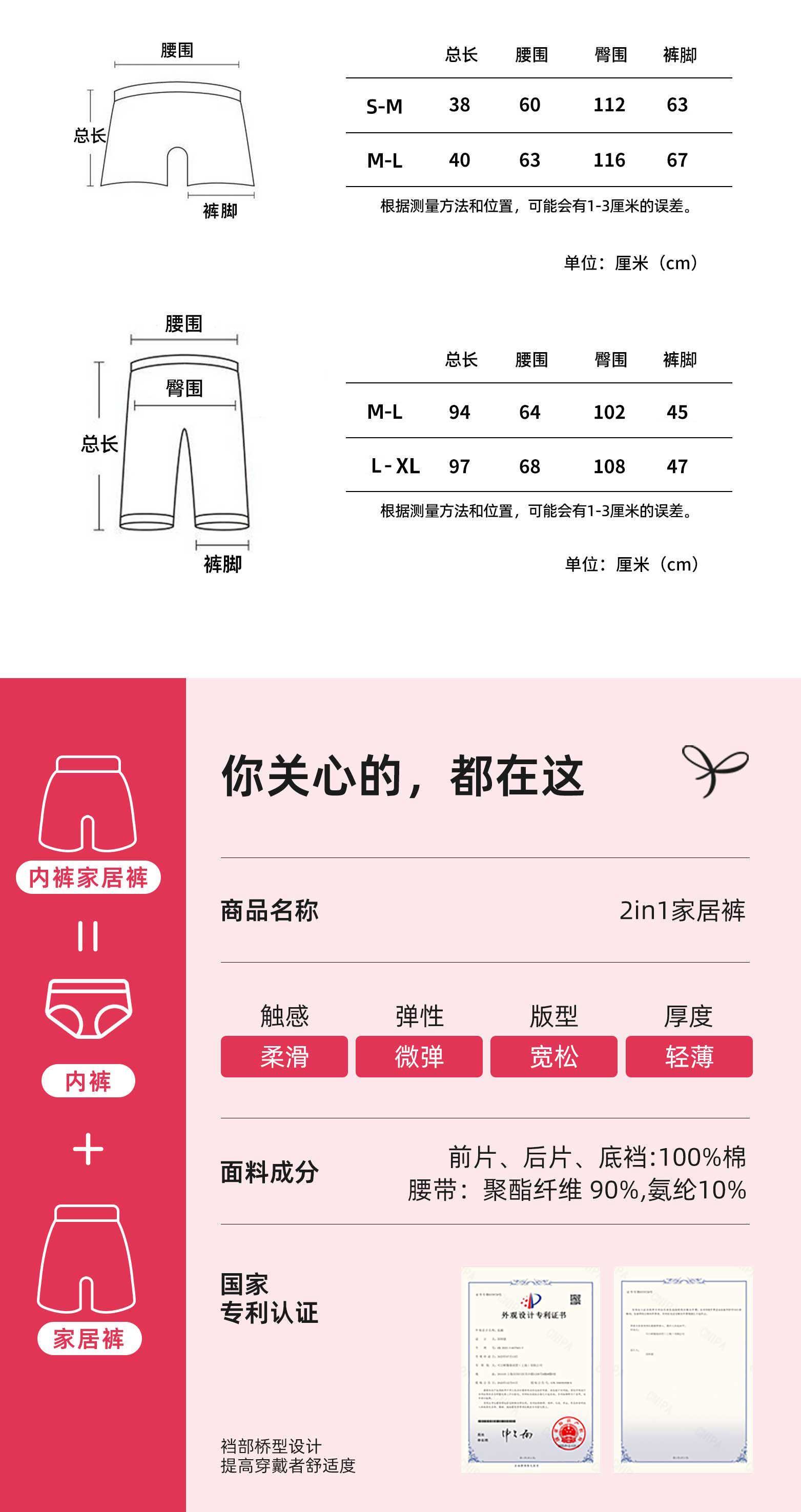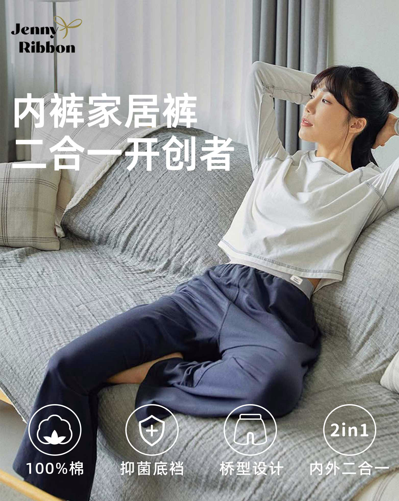 免穿内裤 无拘无束 | Jenny Ribbon 纯棉云感系列 2in1内裤家居长裤(三色可选)