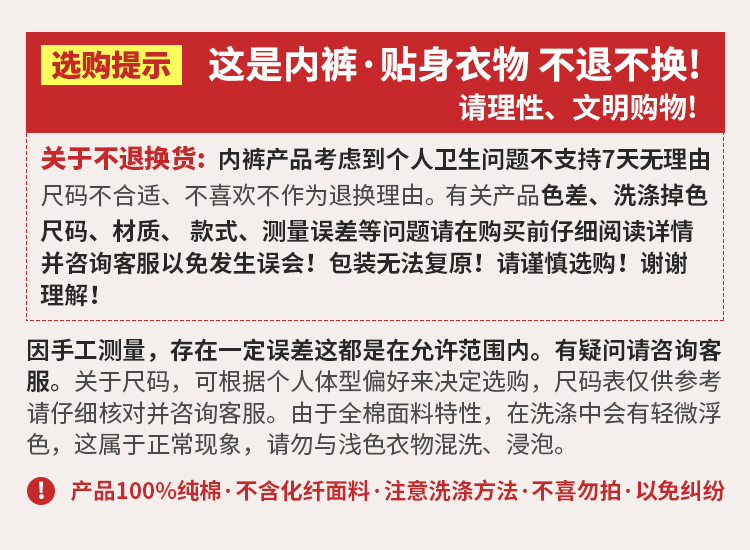 ♥️底裤贴身穿着,从卫生角度考量,无质量问题,不接受七天无理由退换