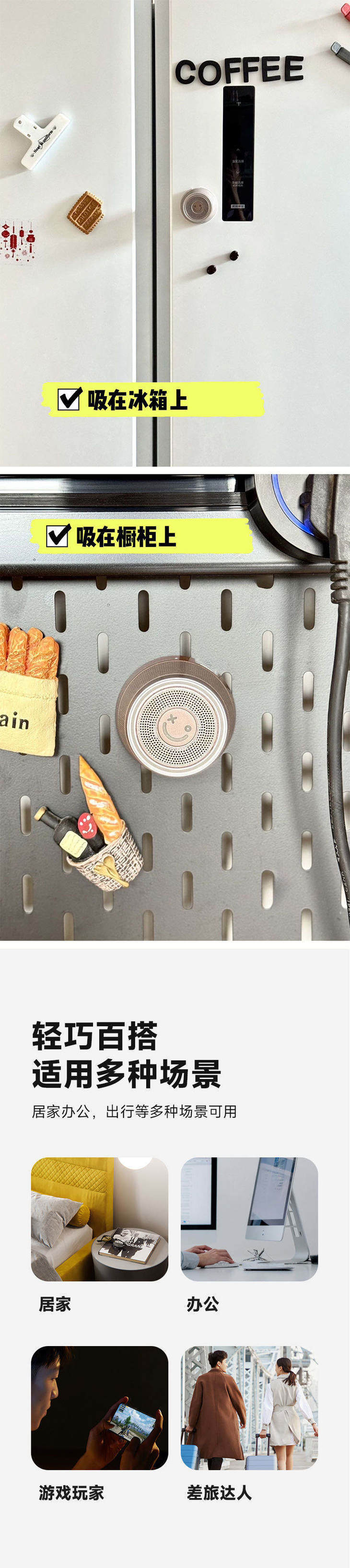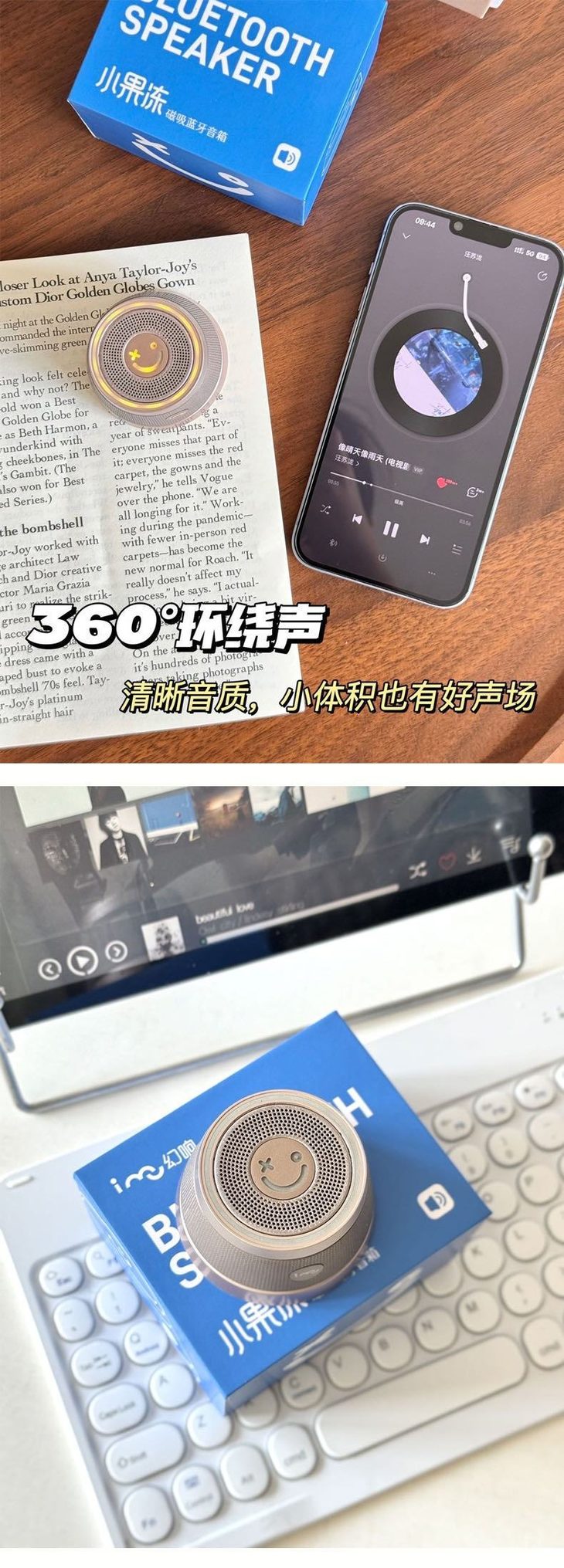 谁懂啊❗入手这个幻响小果冻音箱,直接打开听歌新方式❗小小一个,吸哪儿都稳❗ 🥣做饭吸冰箱上厨房秒变演唱会 🚿洗澡吸墙上,防水设计,边洗边嗨,丝毫不影响 办公时,还可以吸手机上当个支架,边摸鱼超工作~美滋滋 电话会议时,解放双手,清晰收音+立体发声,沟通高效又轻松 🛋客厅打扫卫生时,也可以吸在柜子上,放个音乐或是追个剧,整理家务都不觉得无聊了 360°环绕声够清晰,续航撑一天没问题。轻巧耐带,揣兜里不占地 现在真是用哪带哪,吸上就能听❗❗❗