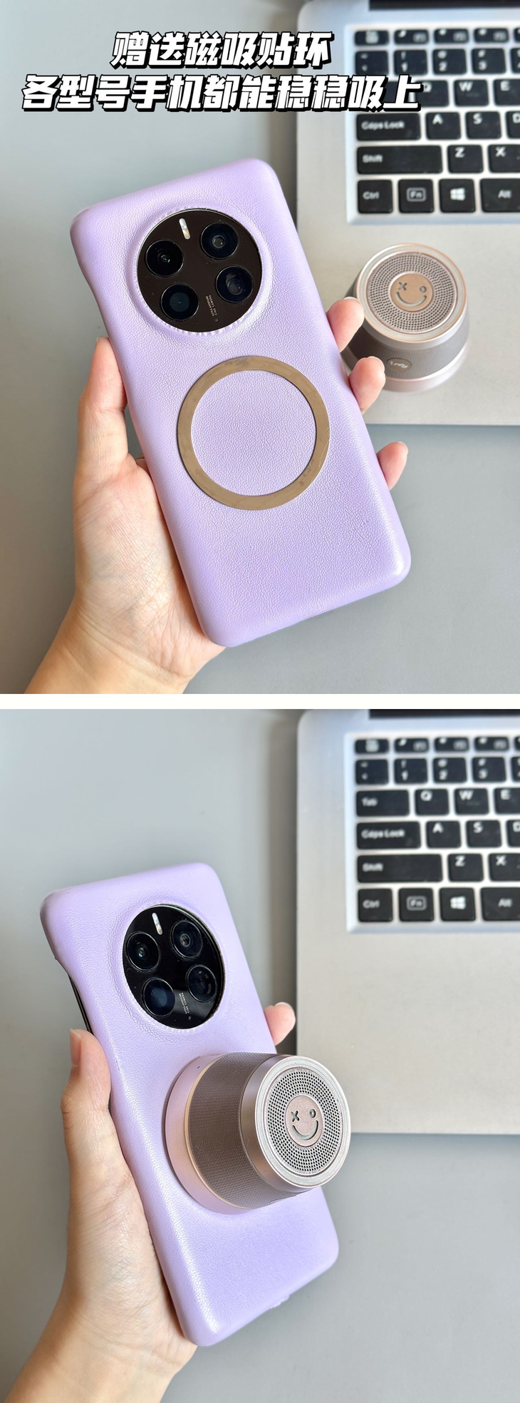 ✅赠送磁吸贴片,适配所有品牌手机 如果手机没有磁吸功能,贴上这片引磁片,就能让手机和磁吸音箱“双向奔赴” 任何品牌任何型号都适配,迷你磁吸音箱,解锁无线听歌新体验~