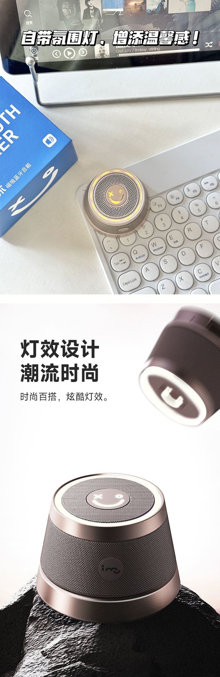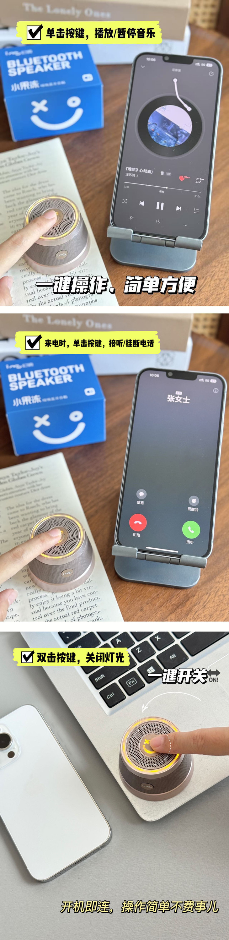 ✅氛围灯光巧调节 音箱自带氛围灯 开机后自动亮起,暖光轻柔不刺眼 日常听歌、追剧时,为场景增添温馨氛围感,打造专属“小确幸”时刻💕 若想专注工作、沉浸式观影,双击多功能按键,灯光秒关,视觉干扰一键消失,安静氛围轻松拿捏~ 自带氛围灯让每一次使用都有恰到好处的仪式感 ❗
