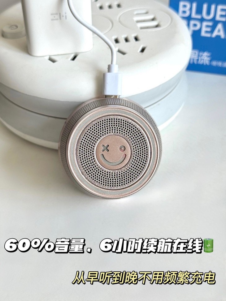 颜值高到能当装饰摆件,放在哪都好看❗ 说实话,一开始看到它精致的外观和上面的笑脸图案,我就有点心动了 它很有质感,放家里的书桌上,既是高品质蓝牙音箱,又像个精致的小摆件 带出去露营,放在帐篷边、野餐垫上拍照也很出片 关键是它不挑风格,不管你家是简约风、复古风,颜值党表示超满足❗❗❗