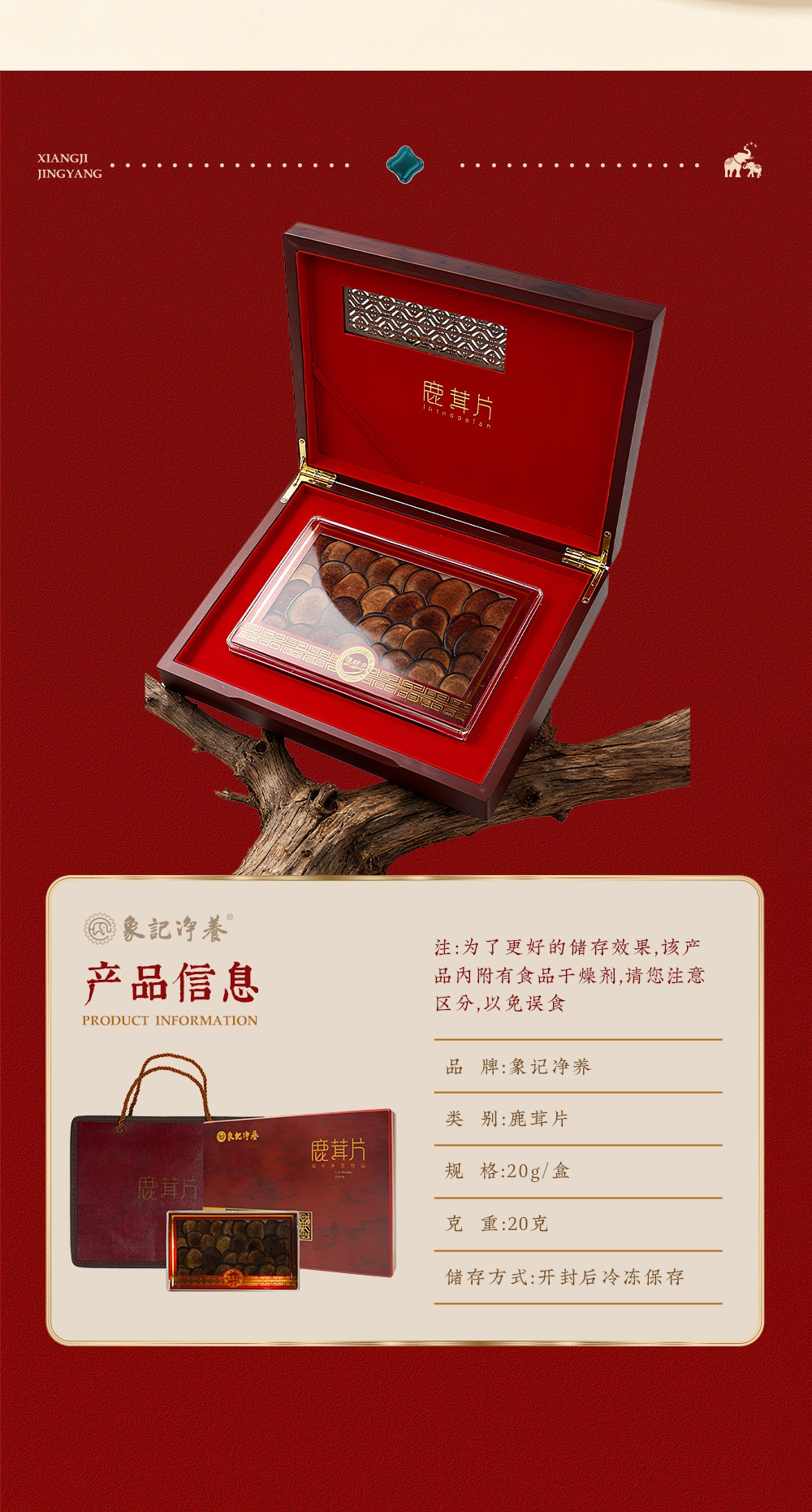 【象记】鹿茸片20克-礼盒装20克,东方滋补 参茸传承