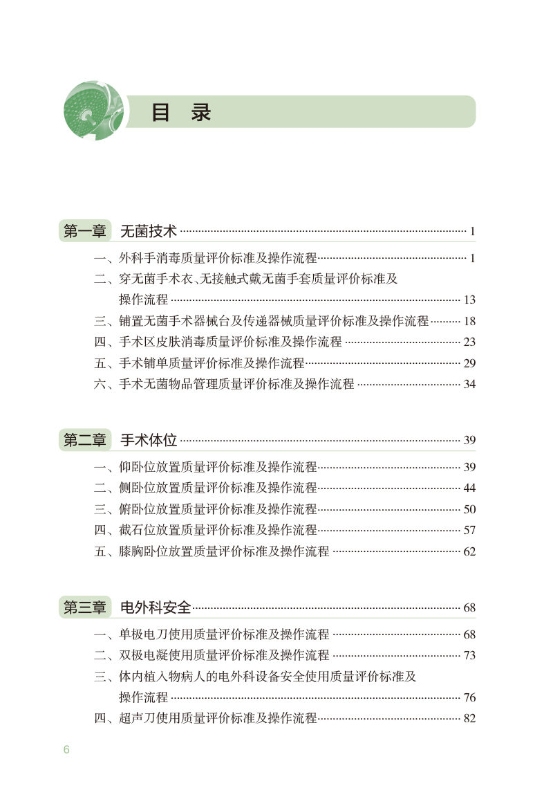 这本书是《手术室护理实践指南》的姊妹篇,主要由封面、目录和正文组成。以《手术室护理实践指南》的目录及内容为主要条线,将指南中主要篇章的内容分别撰写为操作目的、注意事项,操作质量标准及操作流程。 本书包括两个篇章八个章节,结构涵盖手术室护士操作技能质量标准,手术室管理质量标准两个篇章。 1. 操作技能质量评价标准包括:无菌技术、手术体位、电外科安全、手术隔离技术、手术物品清点。 2. 管理质量评价标准包括:手术室管理、感染控制管理、患者安全管理。 3.本书的读者为:全国手术室护理管理者、手术室护士及涉及相关操作的医疗机构护士等。