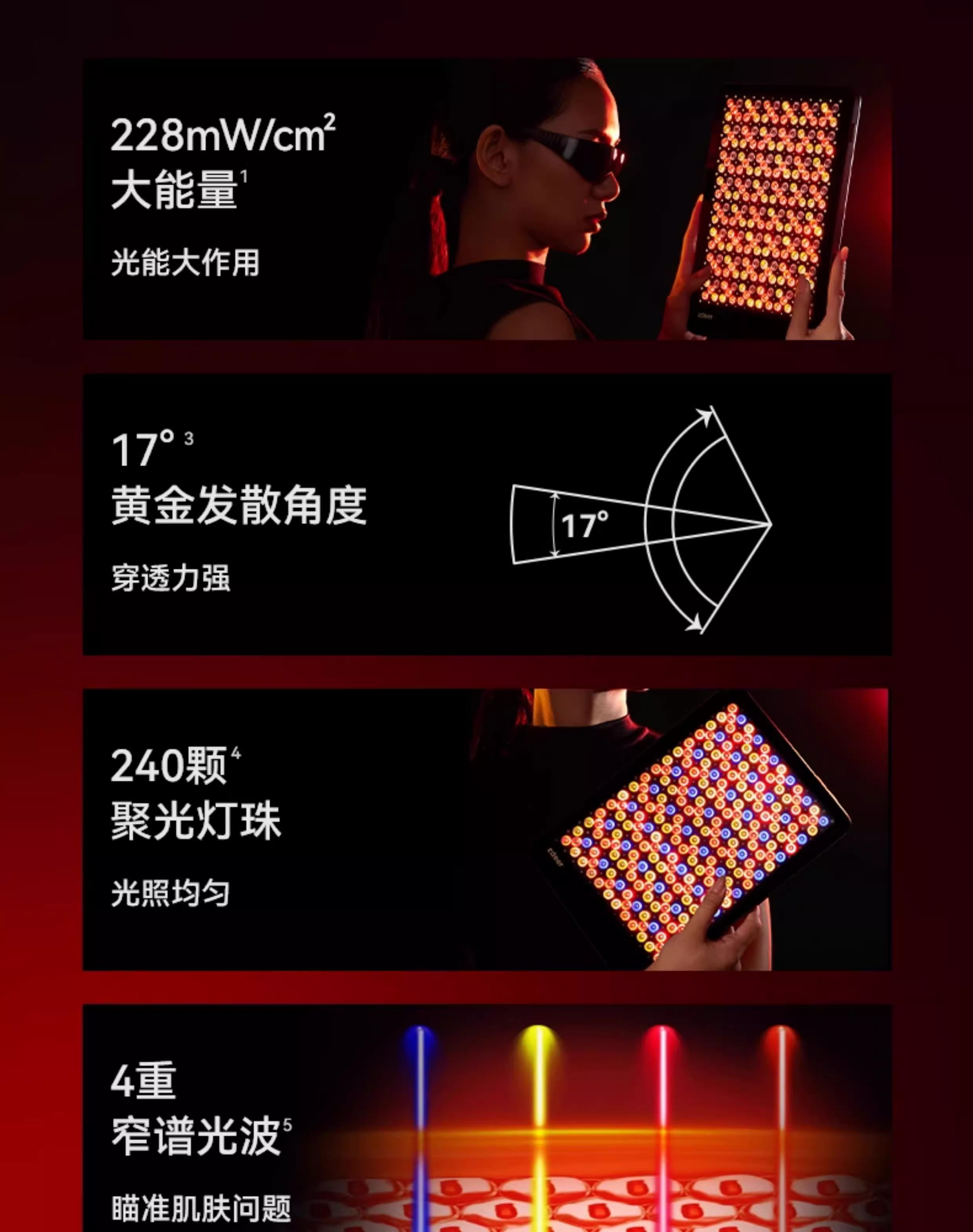 左点医用大排灯美容仪红蓝黄光治疗仪用于祛痘敏感肌玫瑰痤疮消