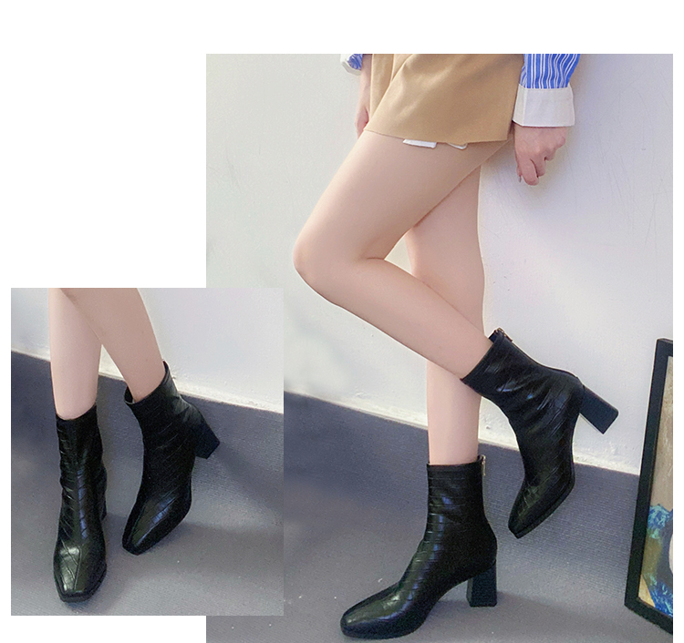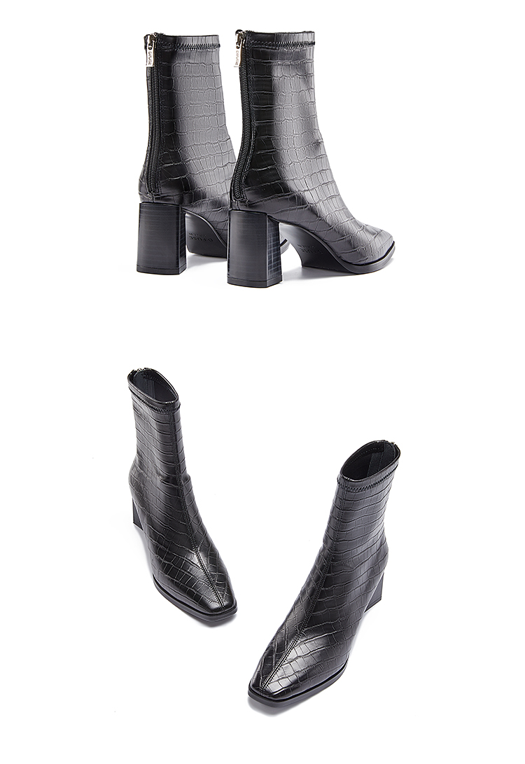 DFuse迪芙斯秋季新款方头鳄鱼纹粗跟短靴女DF24116048