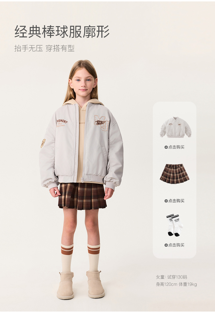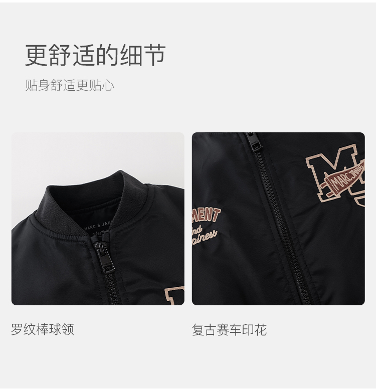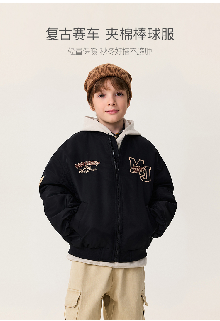 马克珍妮男童复古赛车夹棉棒球服外套2025年秋冬新款551252