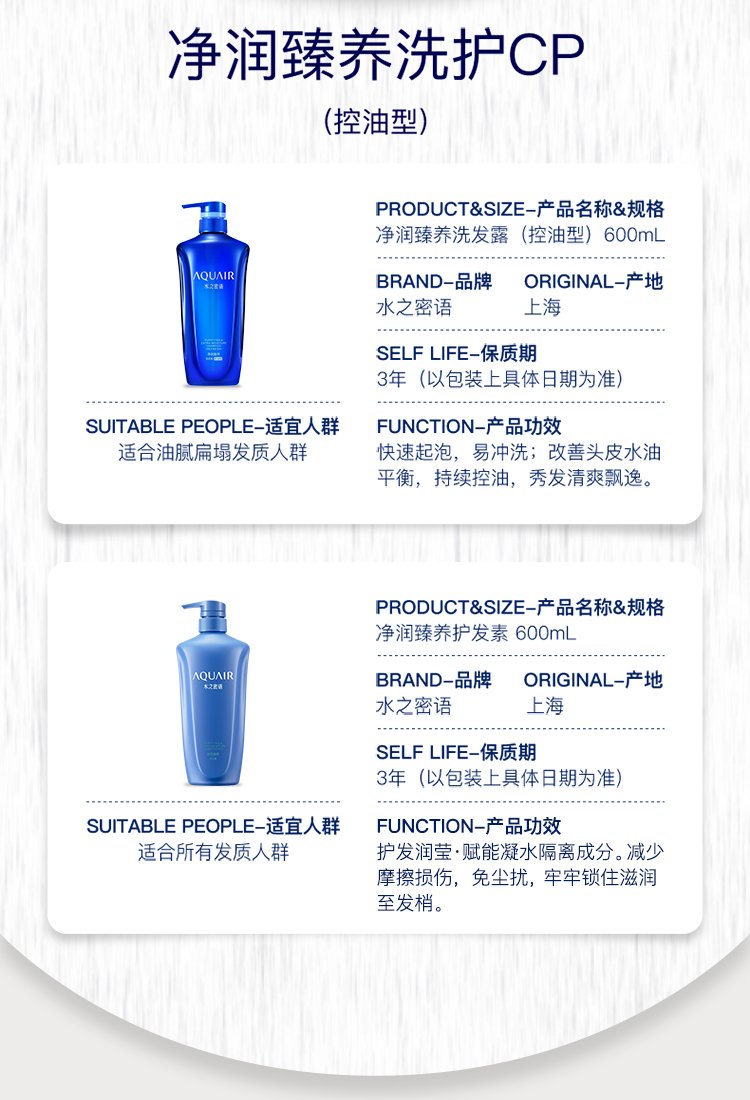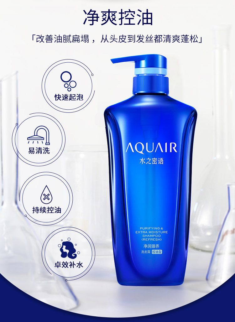 水之密语(AQUAIR)洗发水净润臻养控油蓬松洗发露(控油型)600ml平衡水油男女士通用