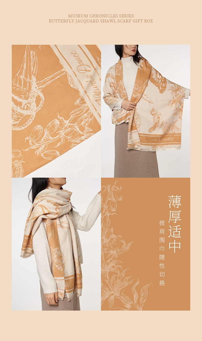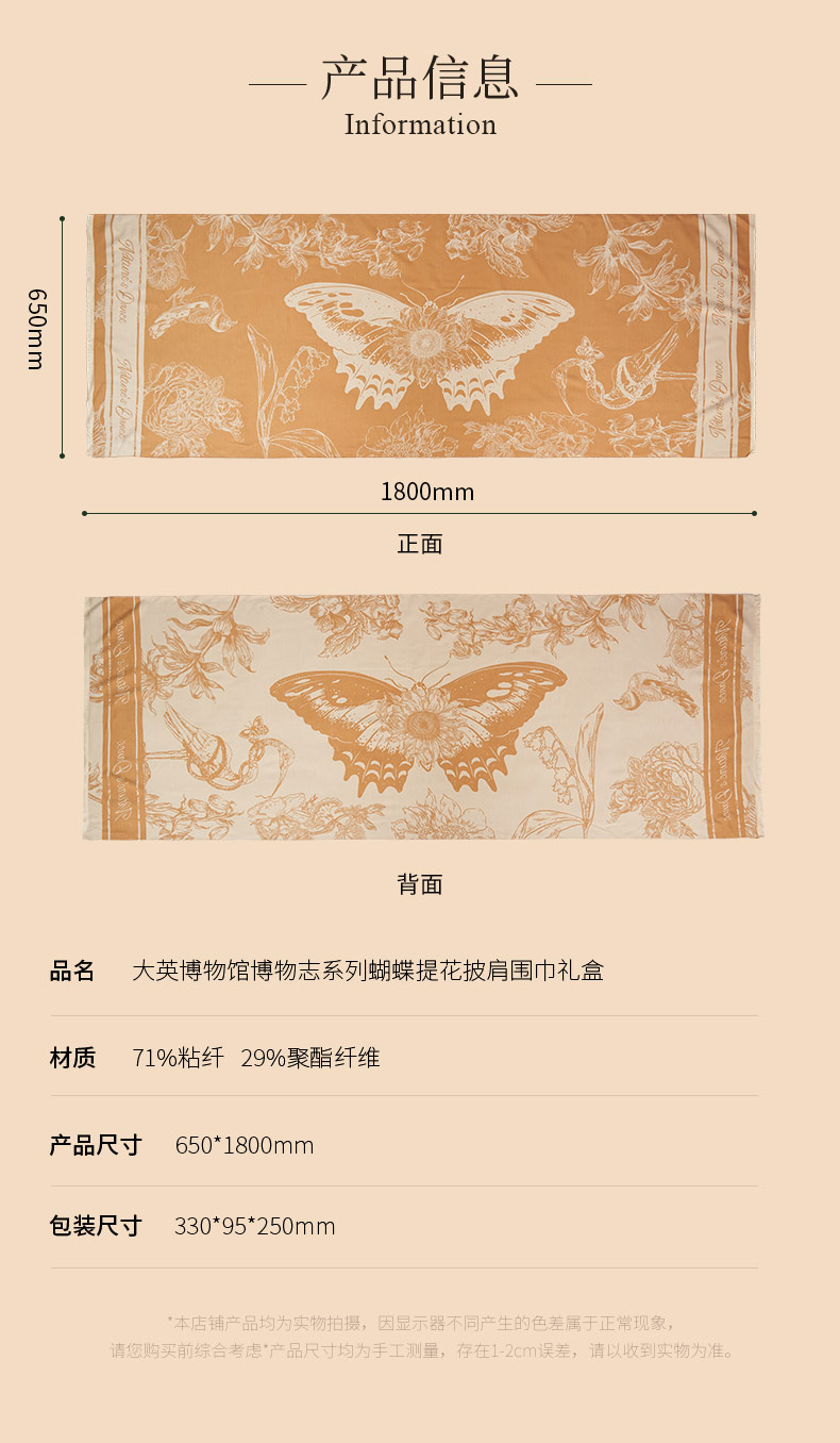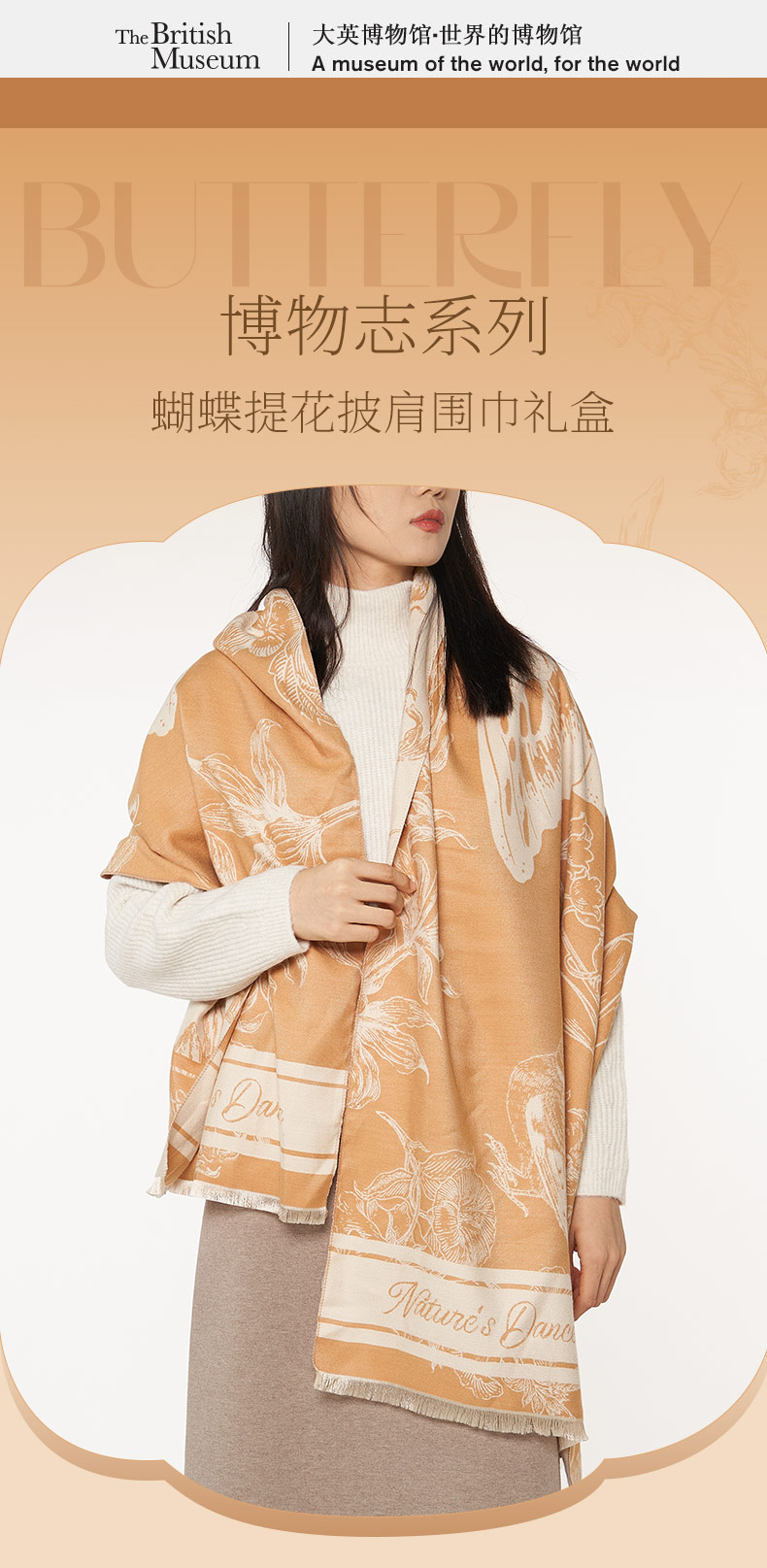 大英博物馆 博物志系列 蝴蝶提花披肩围巾礼盒