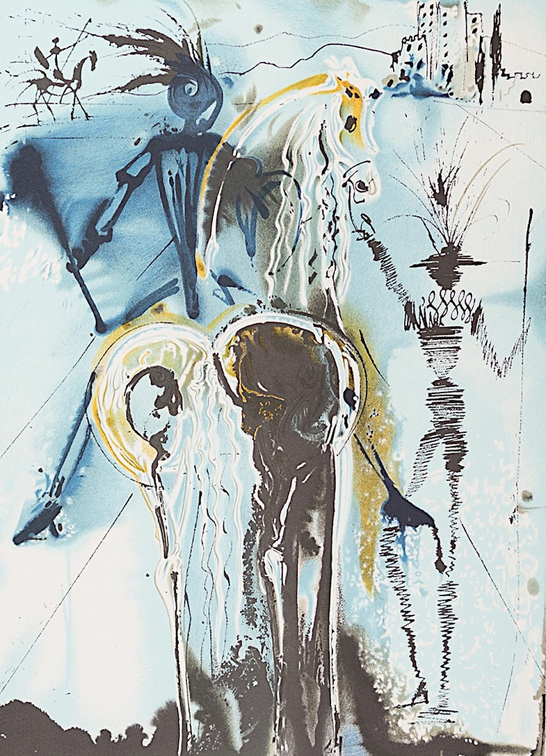 1983年代法国Armand & Georges Israel出版西班牙超现实主义大师萨尔瓦多·达利签名创作限量彩色石版画《堂吉柯德骑马》