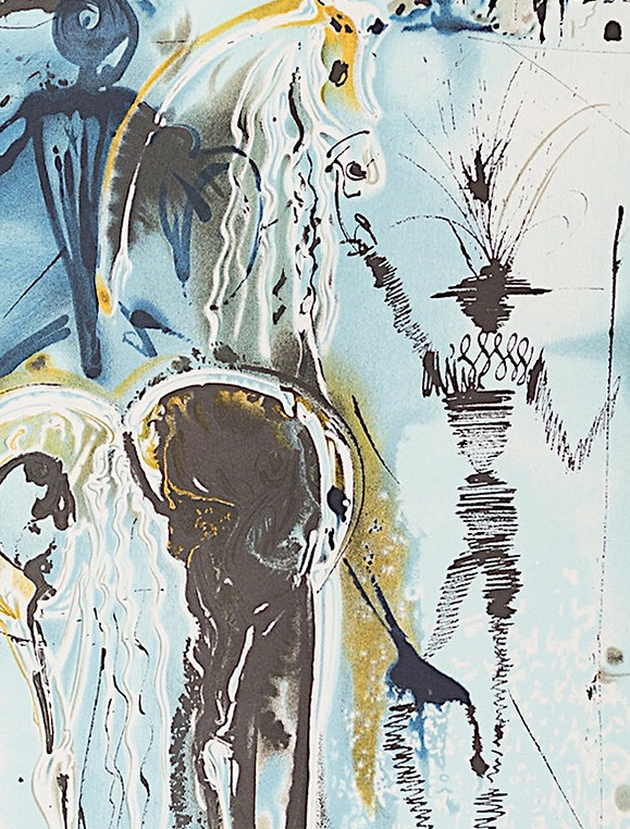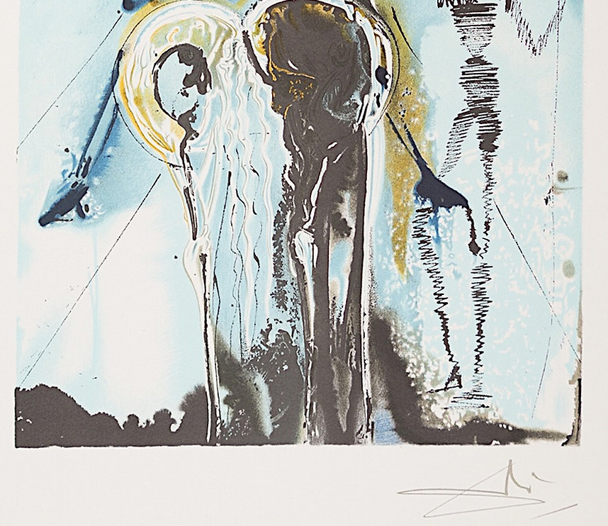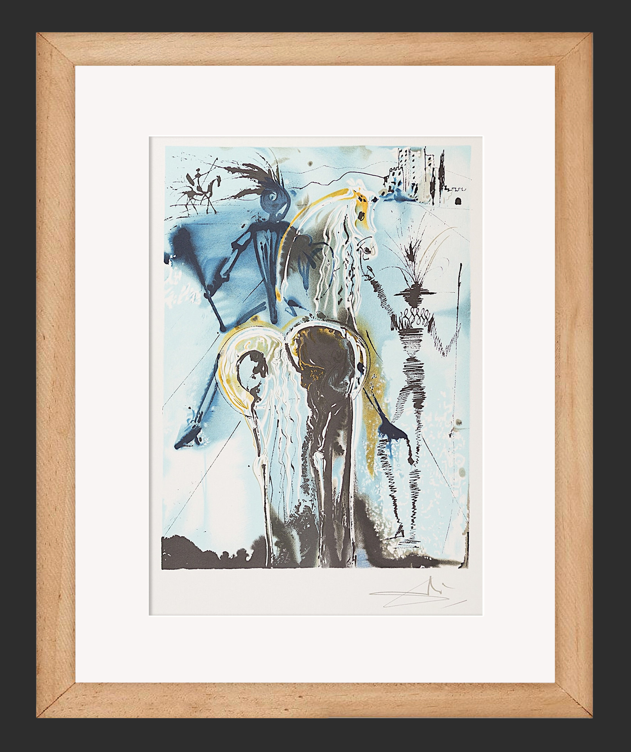 【已售】独角鹿西洋古董1983年代法国Armand & Georges Israel出版西班牙超现实主义大师萨尔瓦多·达利签名创作限量彩色石版画《堂吉柯德骑马》