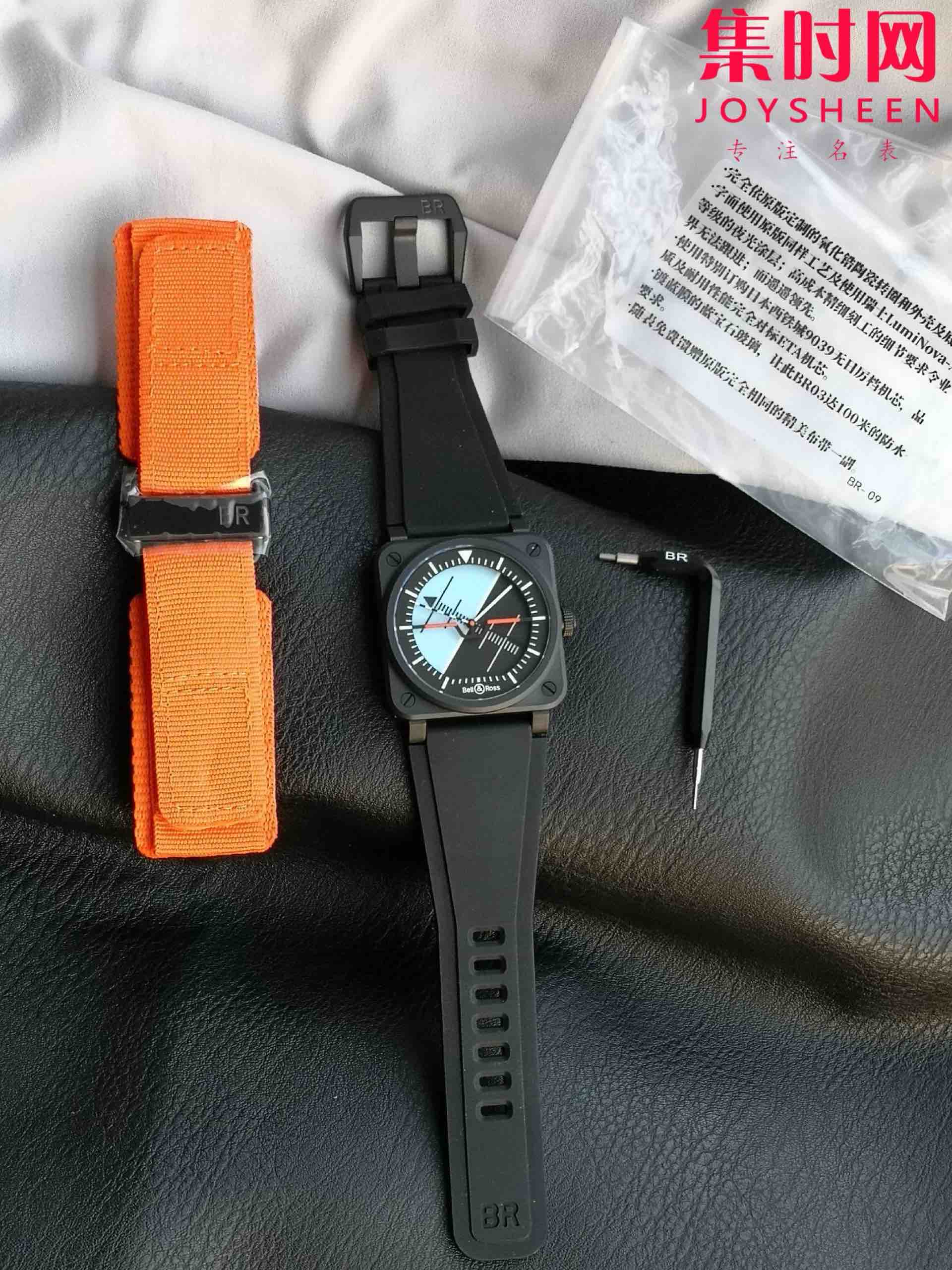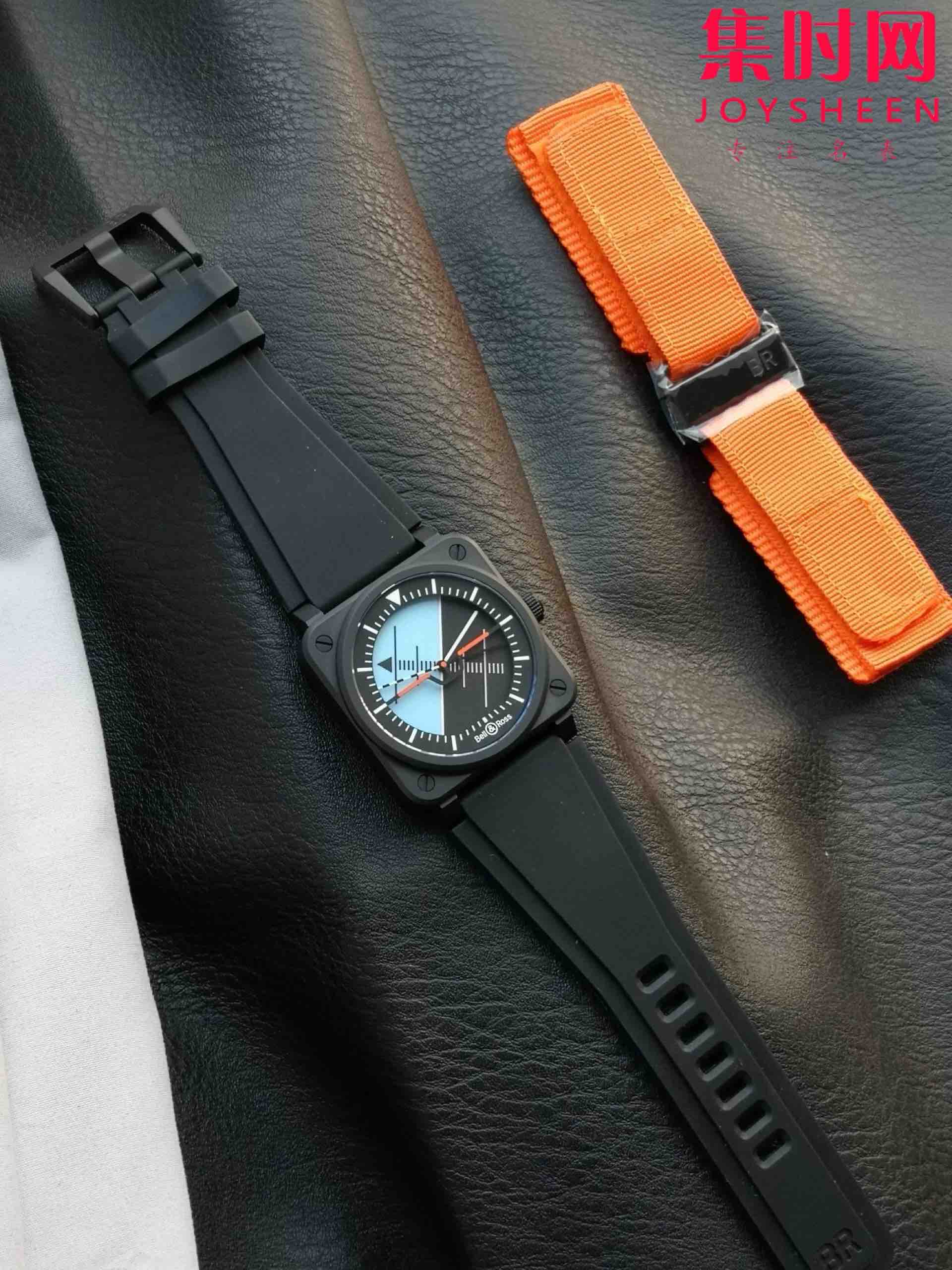 M+柏莱士INSTRUMENTS系列BR03A-HRZ-CE 方形男士腕表,陶瓷表壳搭配帆布型表带,蓝宝石水晶玻璃,黑,蓝双拼色表盘,棒状时标。搭载进口9039型无日历档全自动机械机芯,表盘尺寸:41毫米