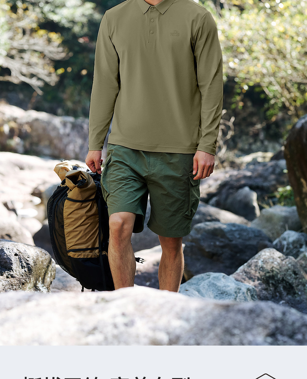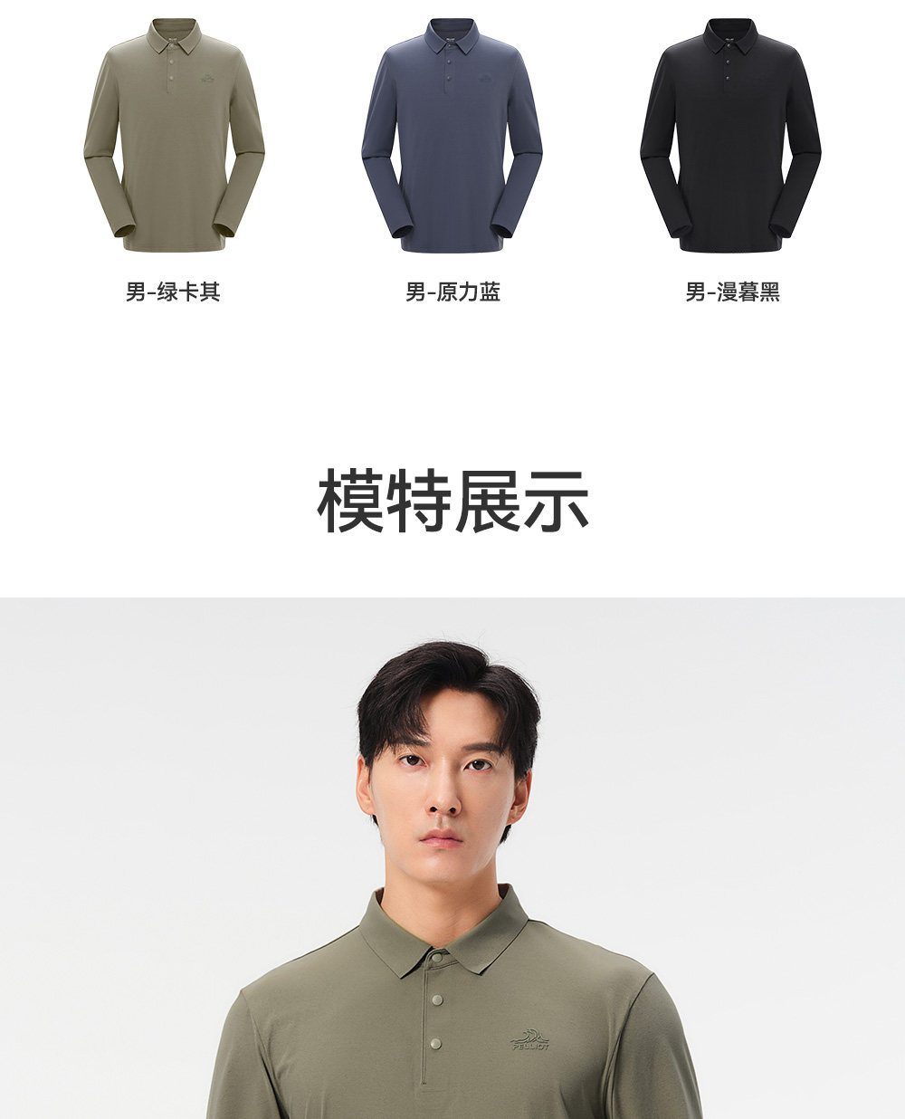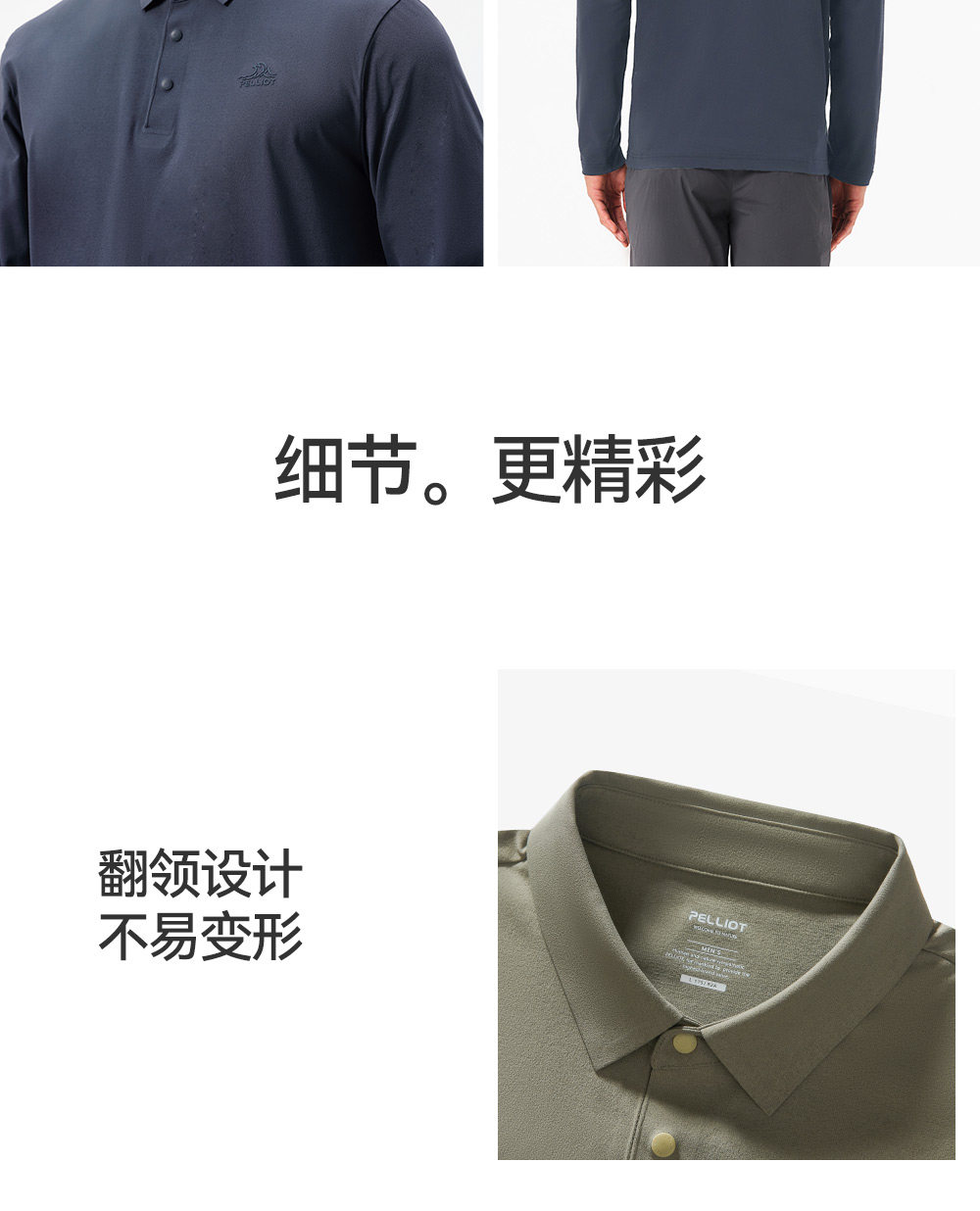 伯希和户外速干T恤男春季新款运动长袖休闲上衣翻领POLO打底衫