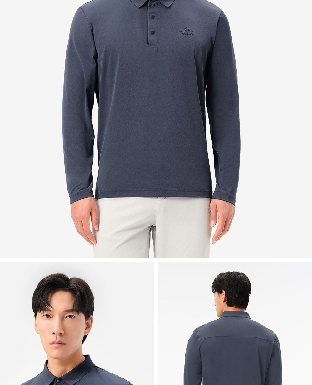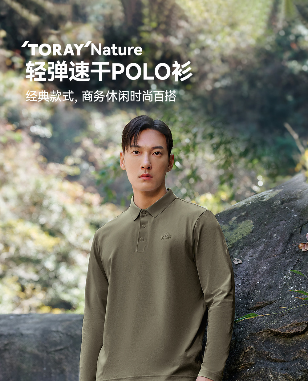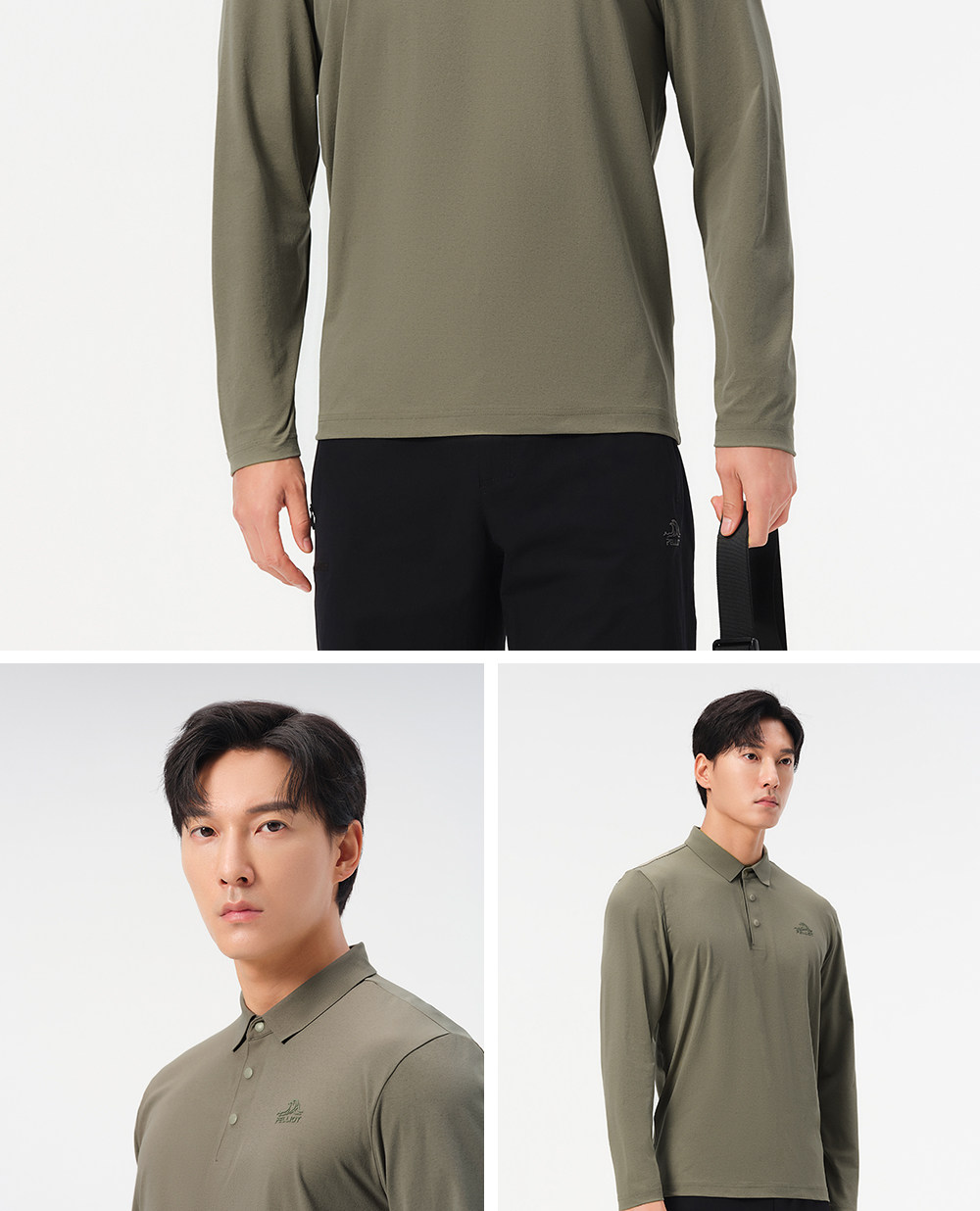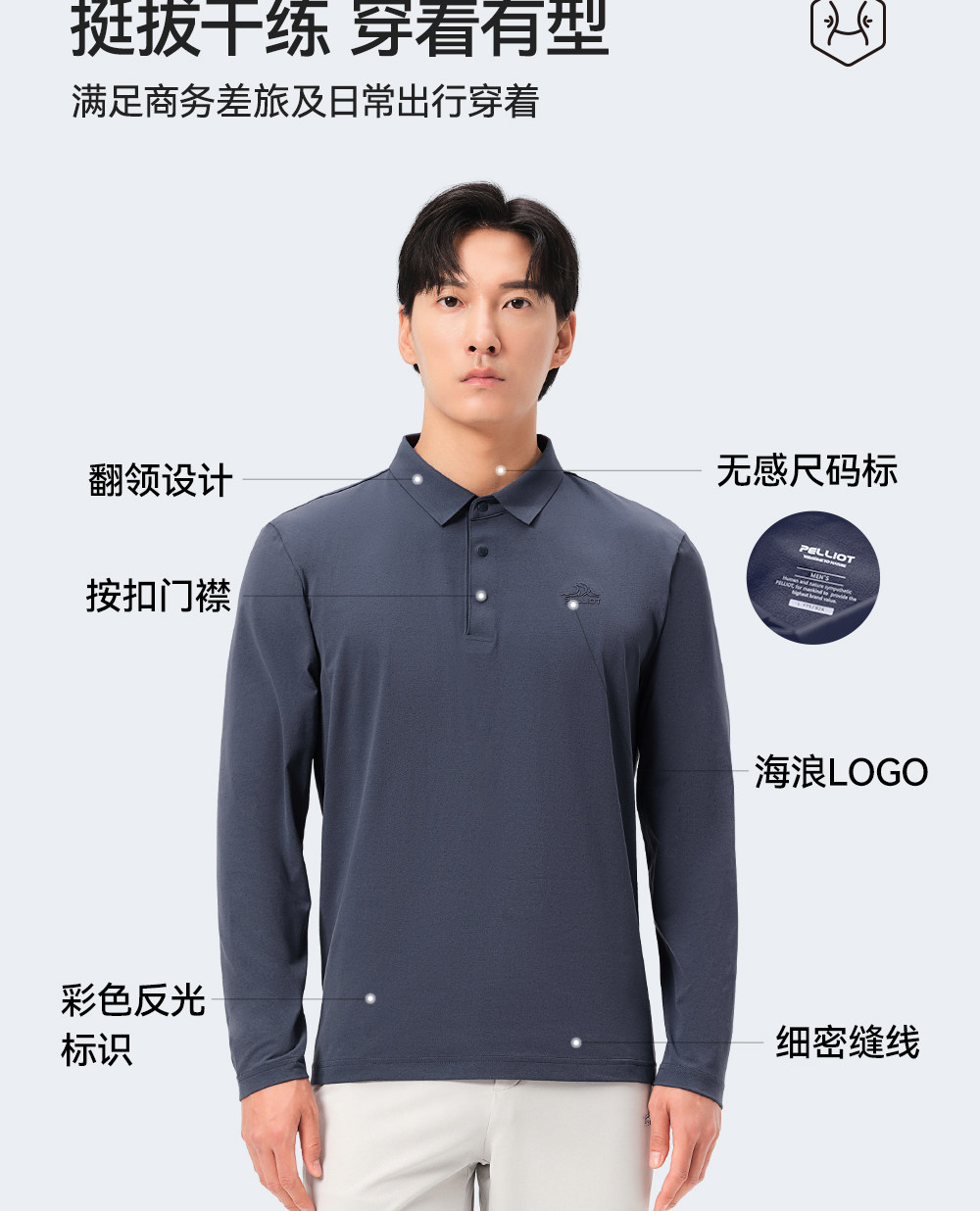 伯希和户外速干T恤男春季新款运动长袖休闲上衣翻领POLO打底衫