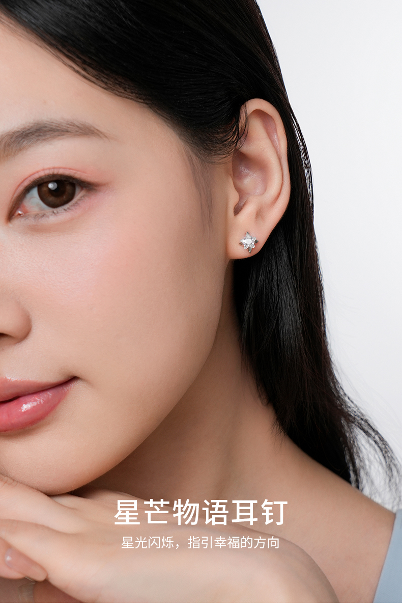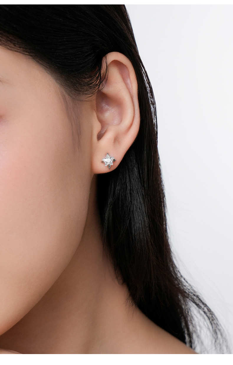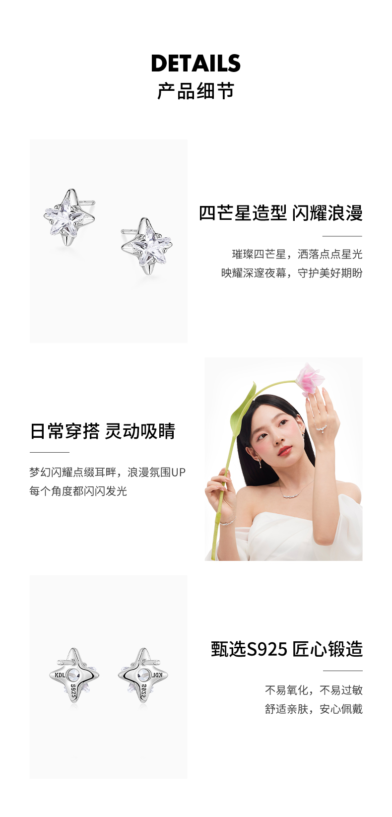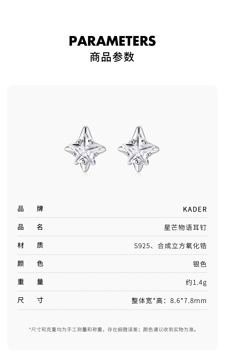 卡蒂罗/KADER 星芒物语耳钉 轻奢时尚高级感四芒星十字架造型养耳洞耳饰 璀璨星星闪耀吸睛满钻配饰 925银