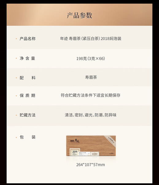 年迹·寿眉茶(紧压白茶)2018焖泡装