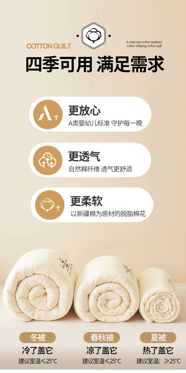 【A类母婴级】纯棉新疆棉花被冬季全棉被子学生宿舍家用保暖春秋棉絮褥加厚被芯