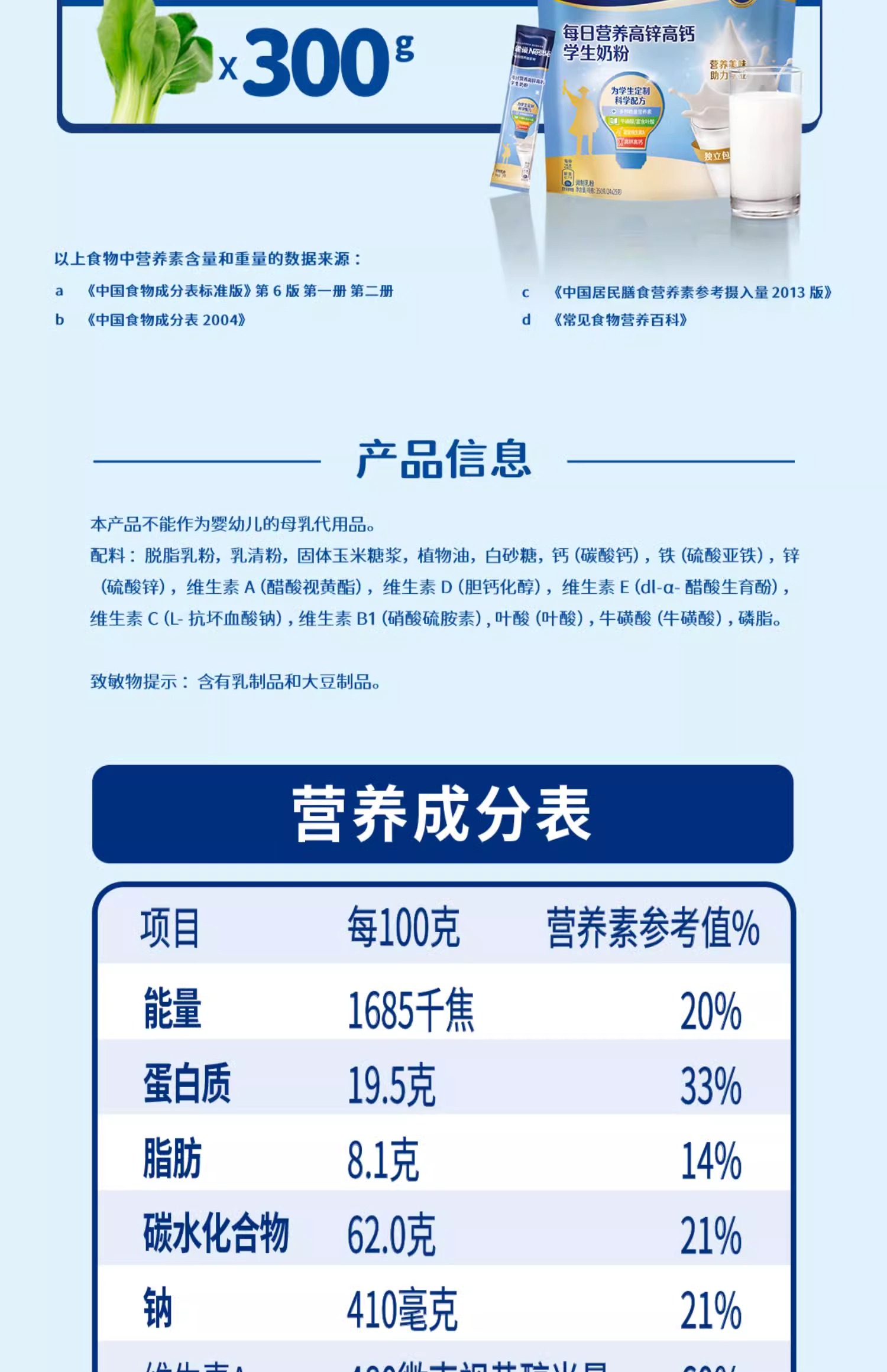 雀巢每日营养高锌高钙学生奶粉(14x25g)*2袋