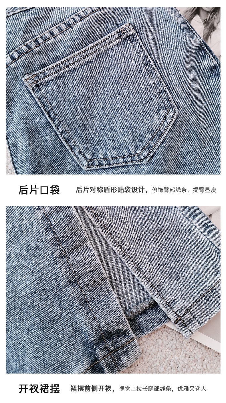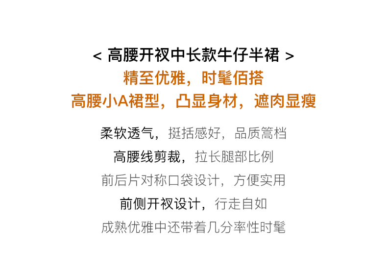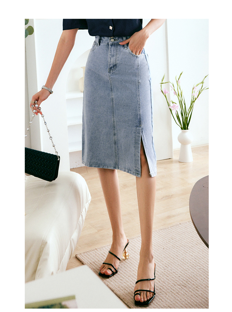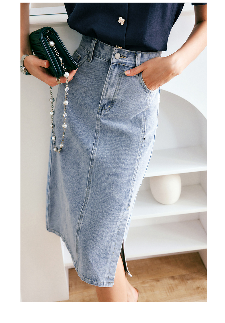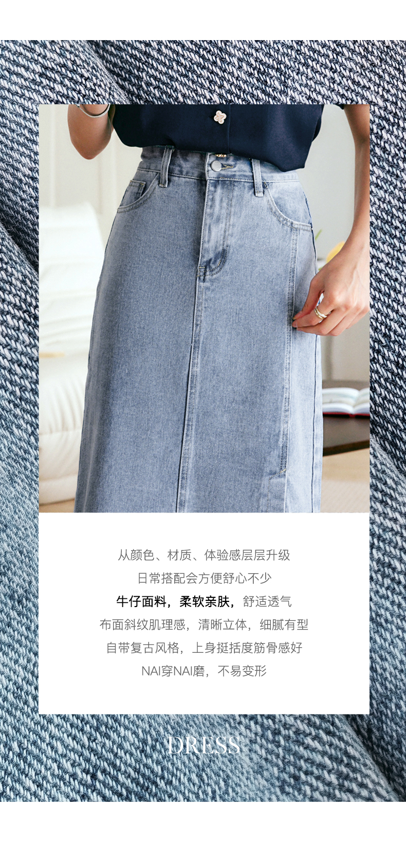 欧芮儿牛仔半身裙新款a字包臀中长款薄款显瘦侧边开叉裙
