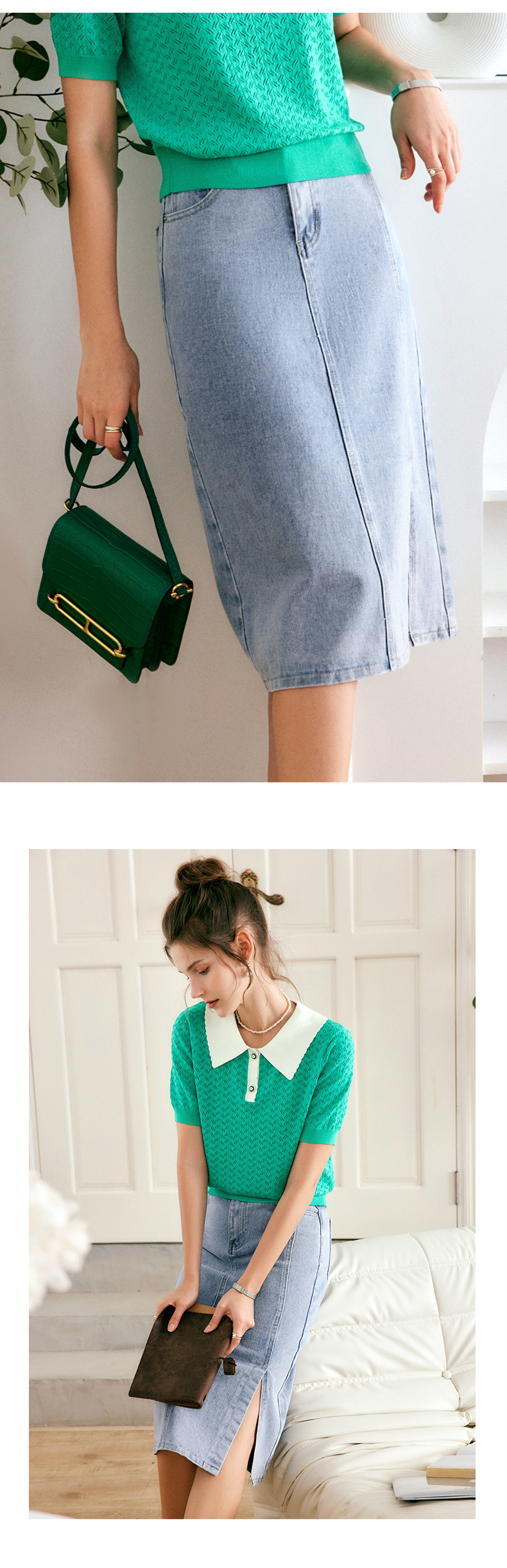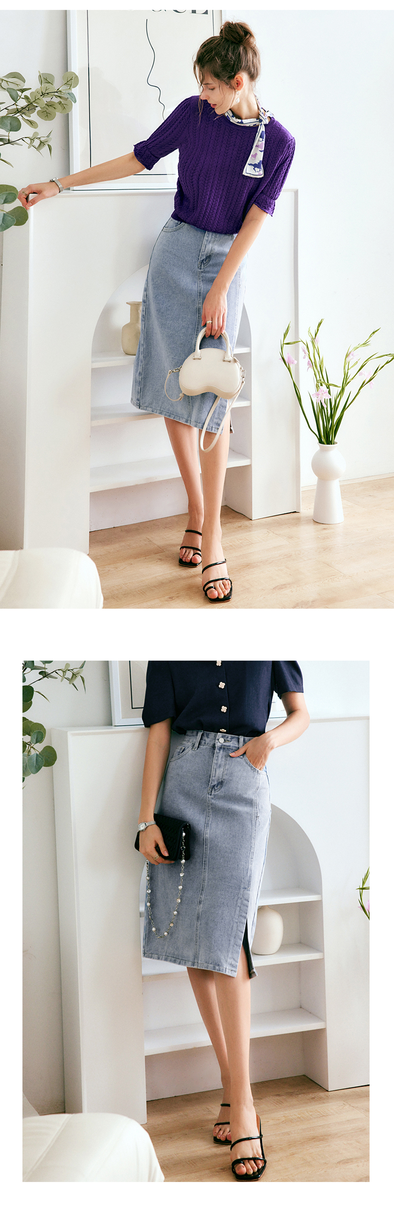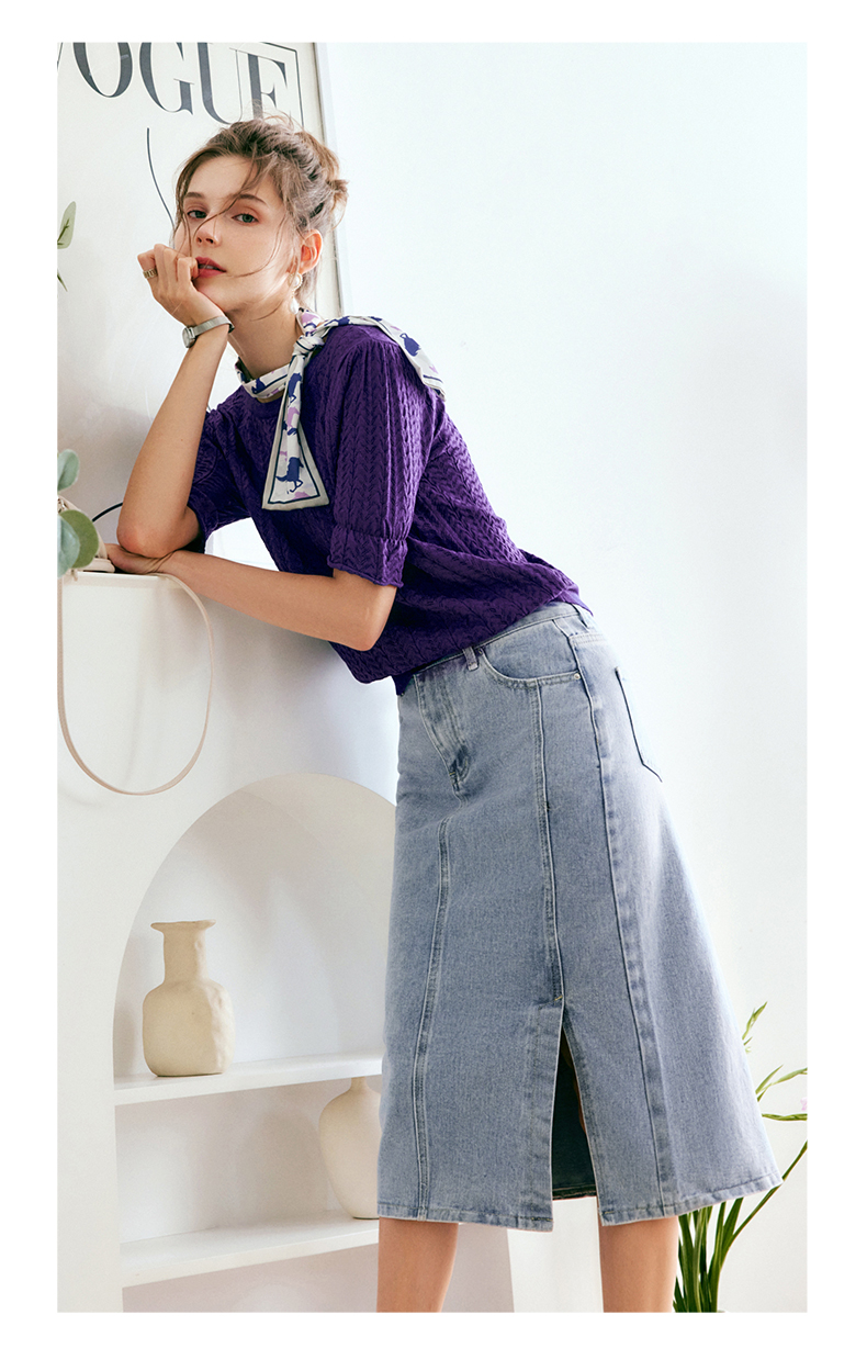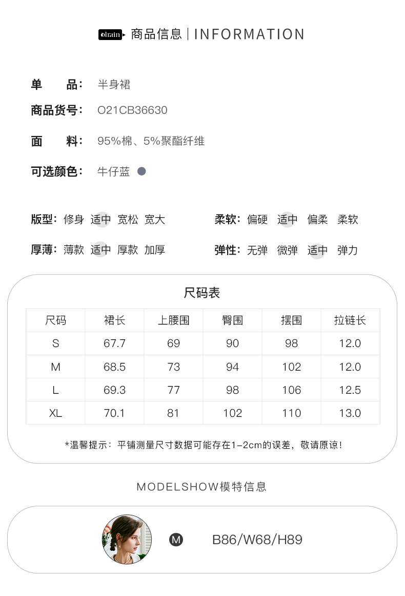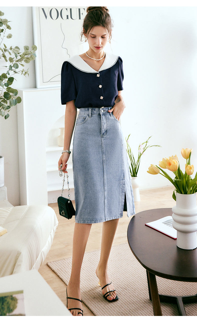欧芮儿牛仔半身裙新款a字包臀中长款薄款显瘦侧边开叉裙