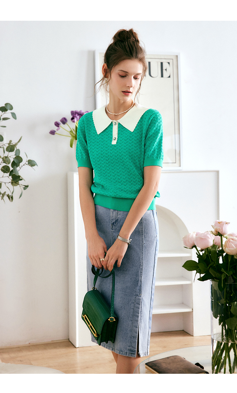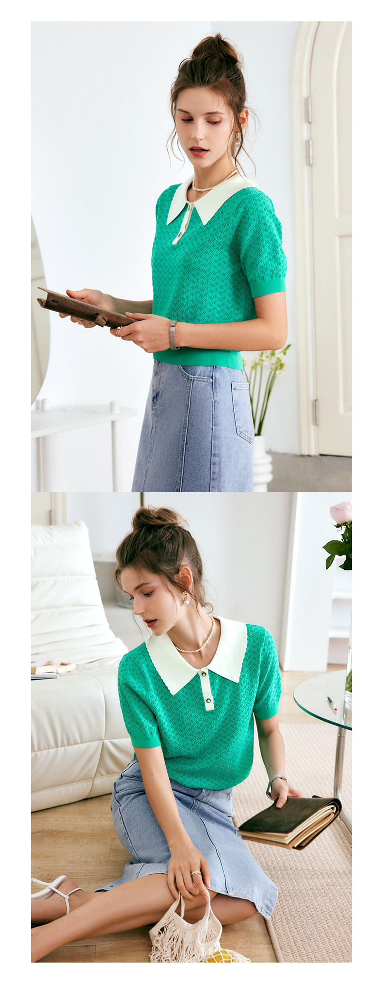 OLrain欧芮儿正肩短袖T恤女夏季2024年新款设计感简约方领上衣