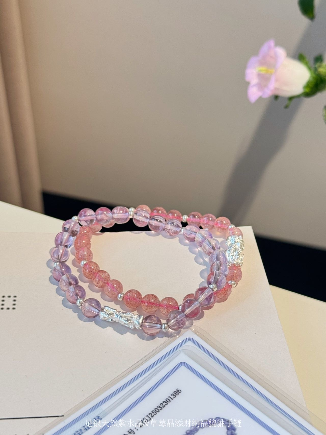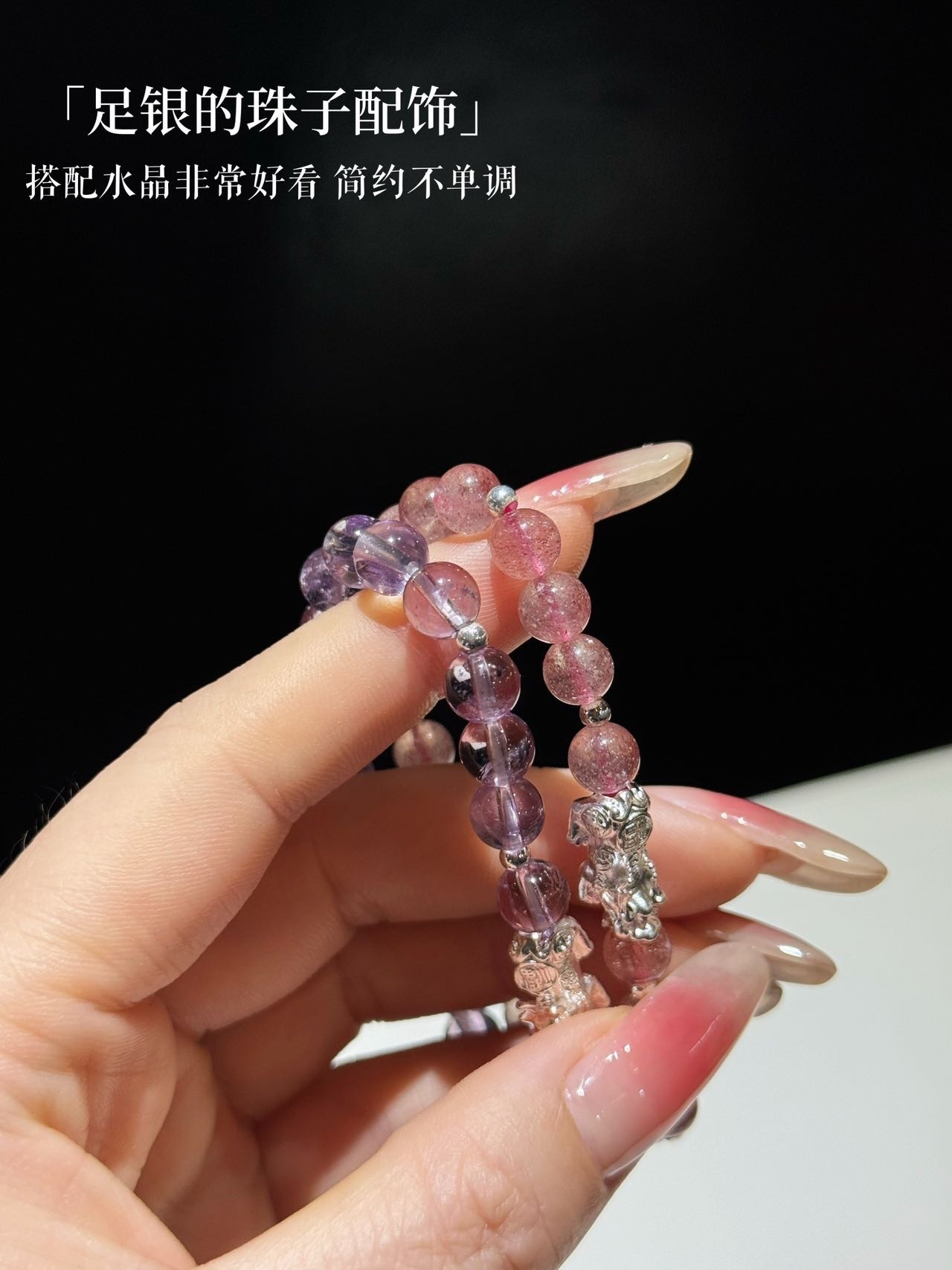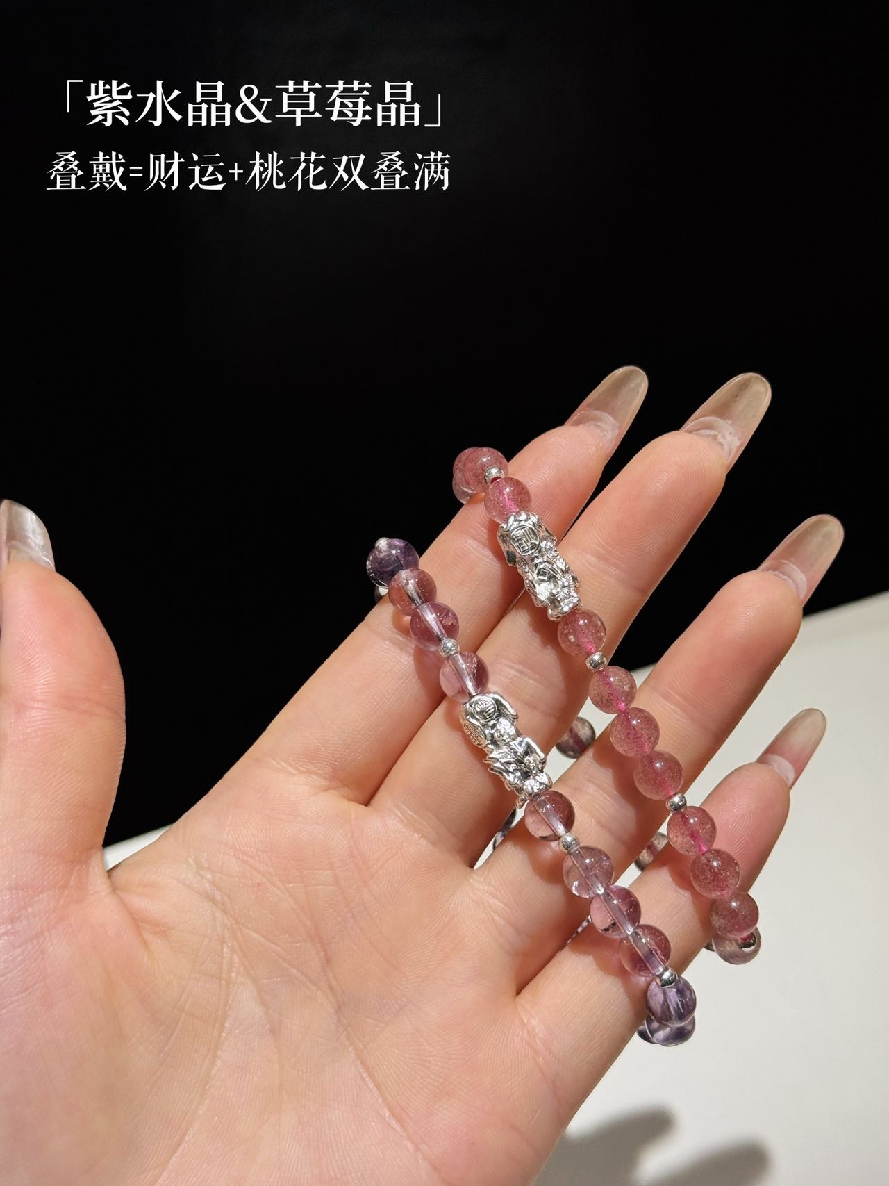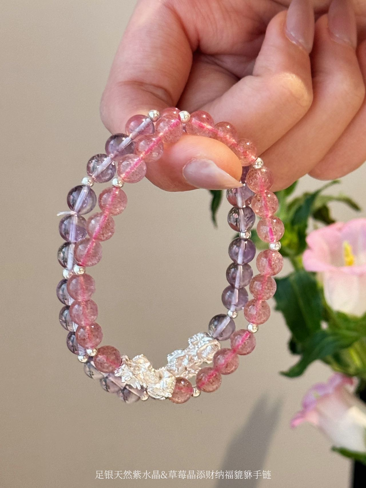 点击购买!足银天然紫水晶貔貅手链/草莓晶貔貅手链