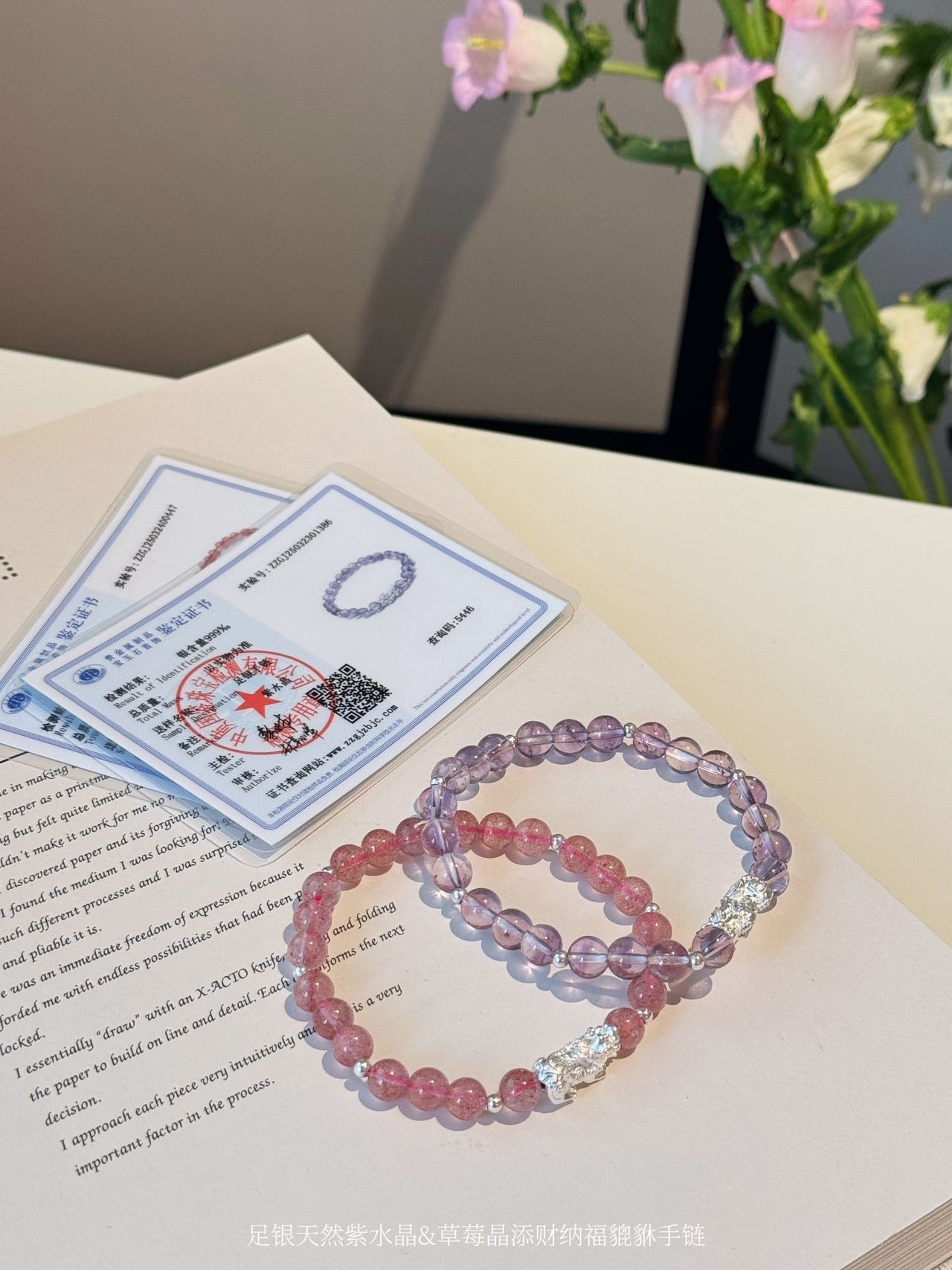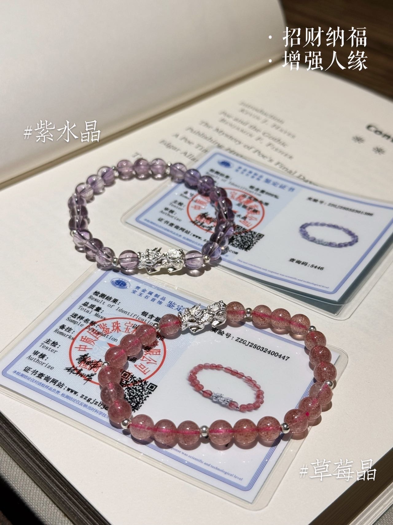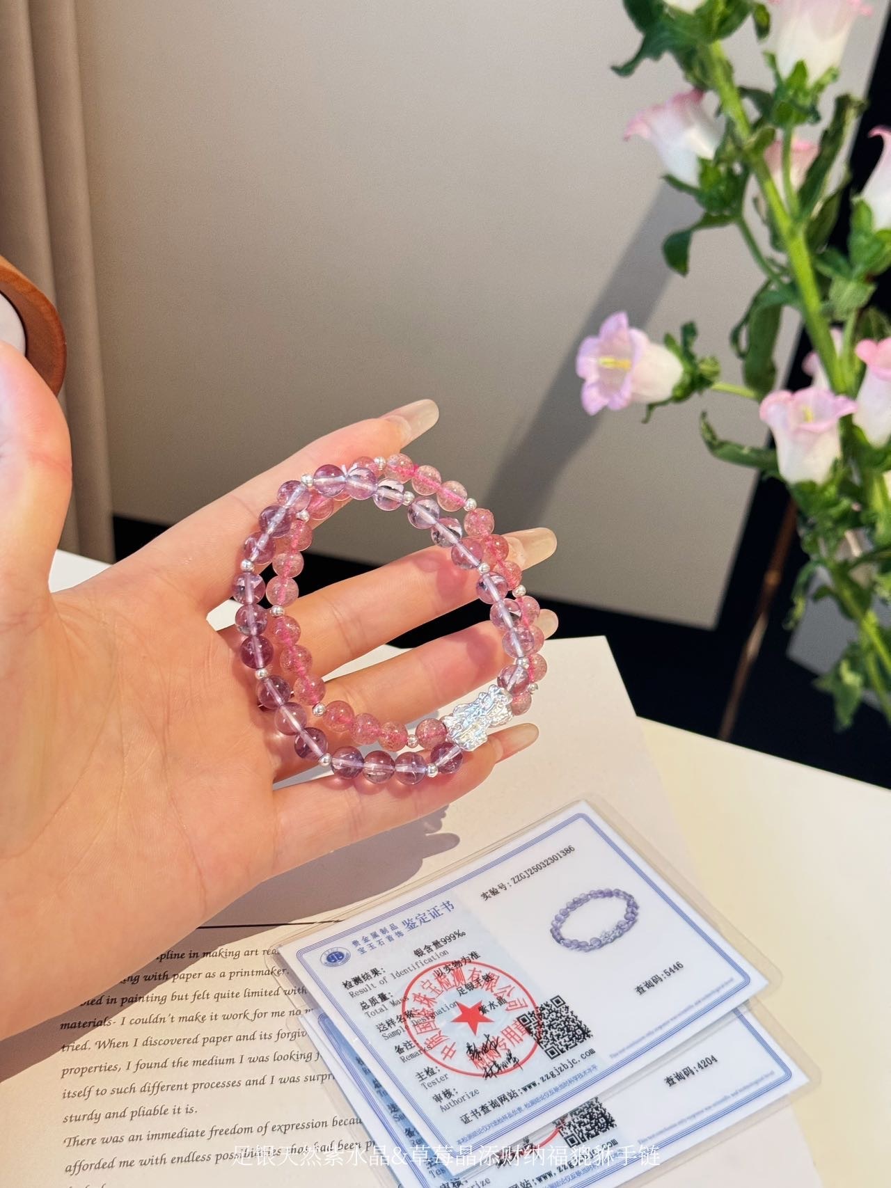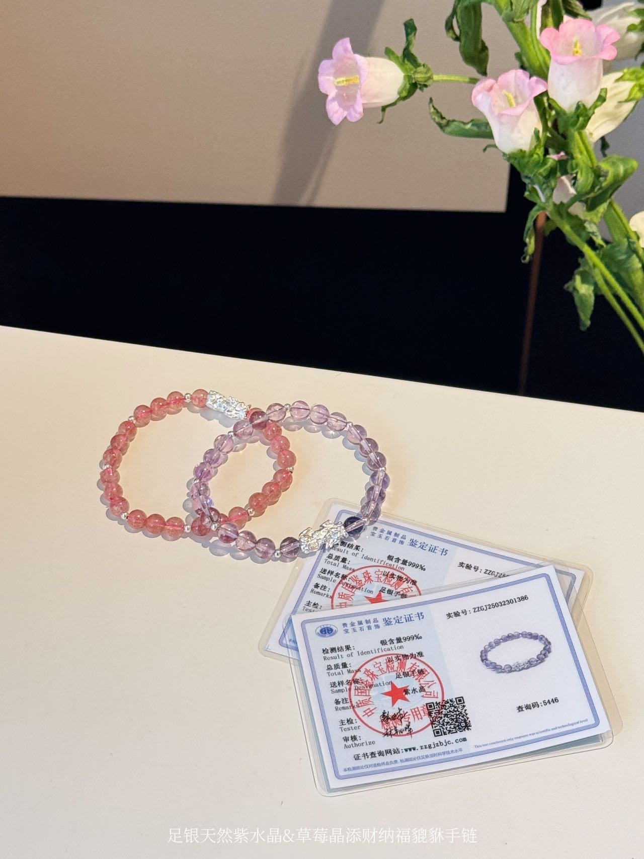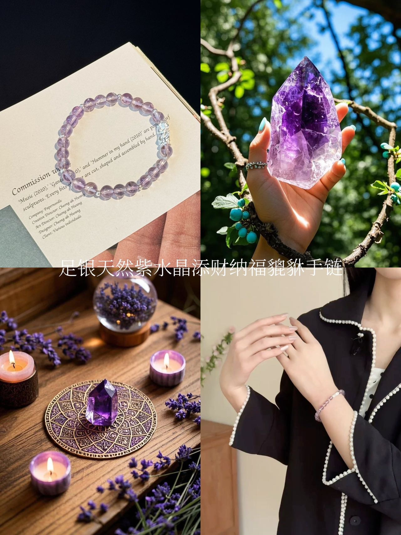 点击购买!足银天然紫水晶貔貅手链/草莓晶貔貅手链