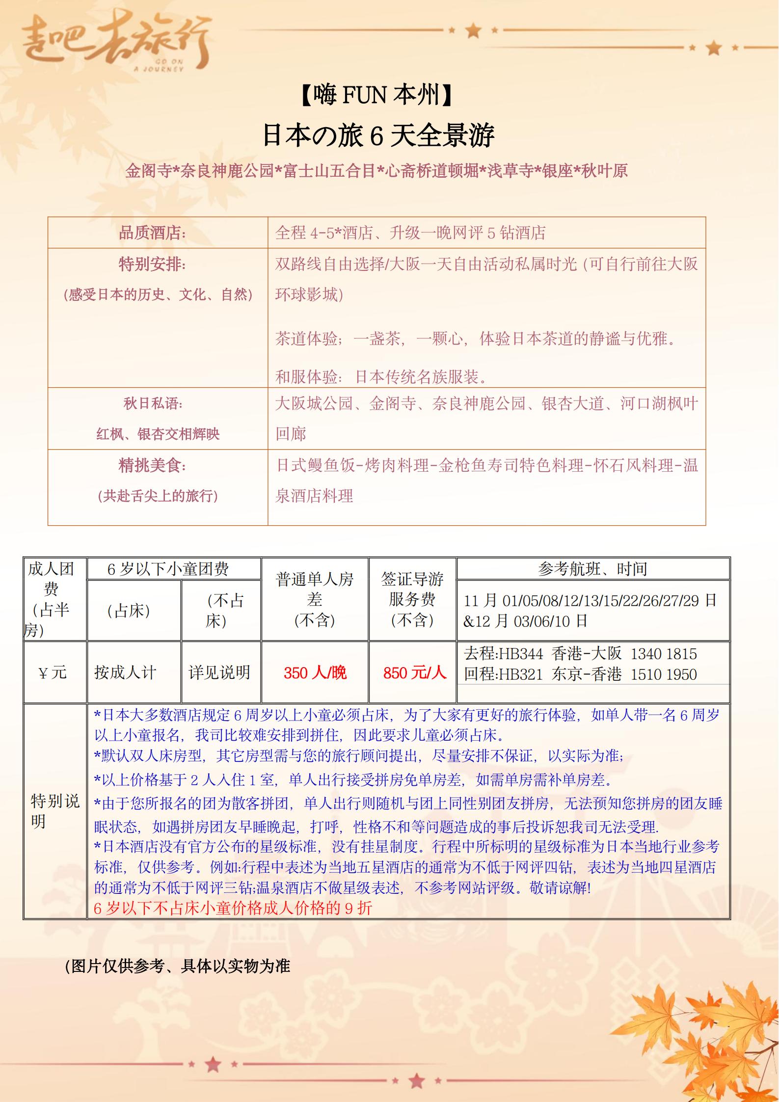 【特惠游】<日本6天双飞>金阁寺*奈良神鹿公园*富士山五合目*心斋桥道顿堀*浅草寺*银座*秋叶原