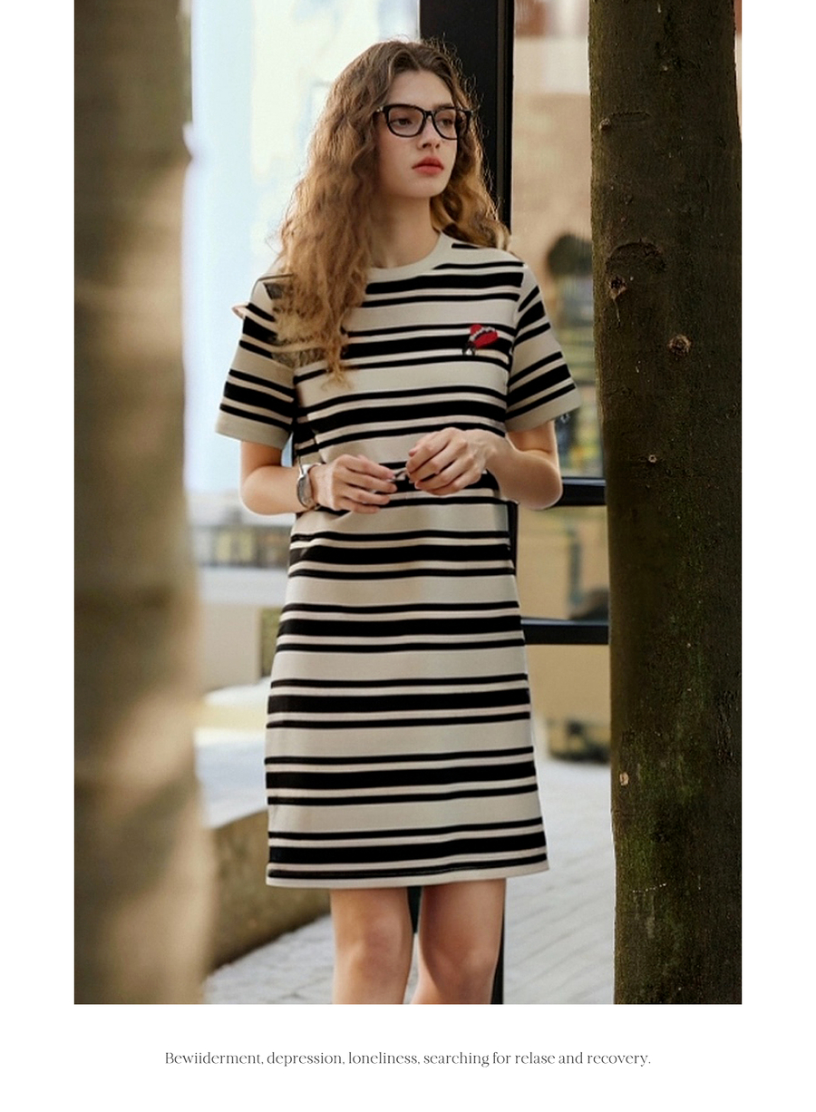 OLrain欧芮儿法式2025夏季新款条纹休闲时尚连衣裙小个子显瘦长裙