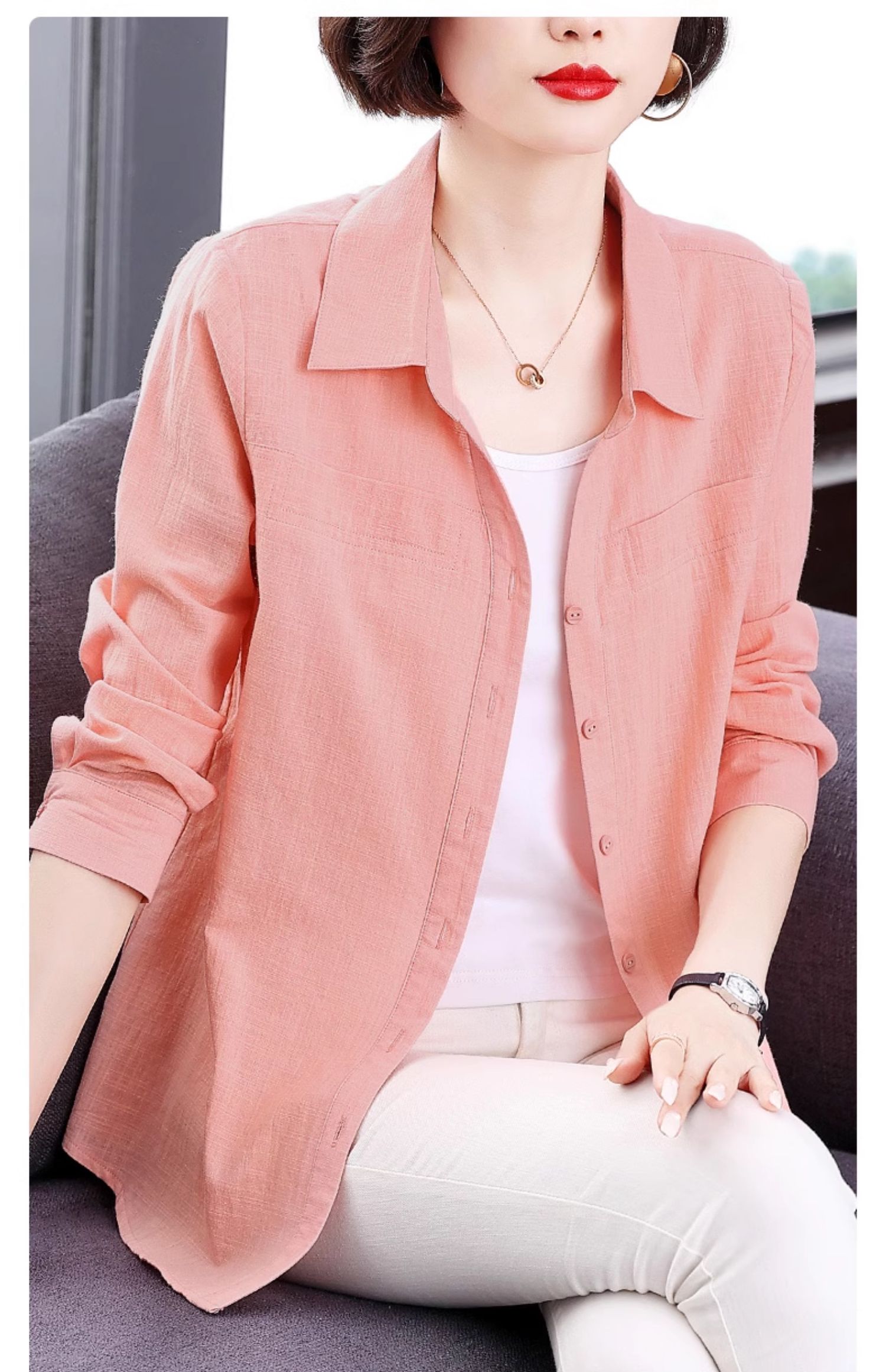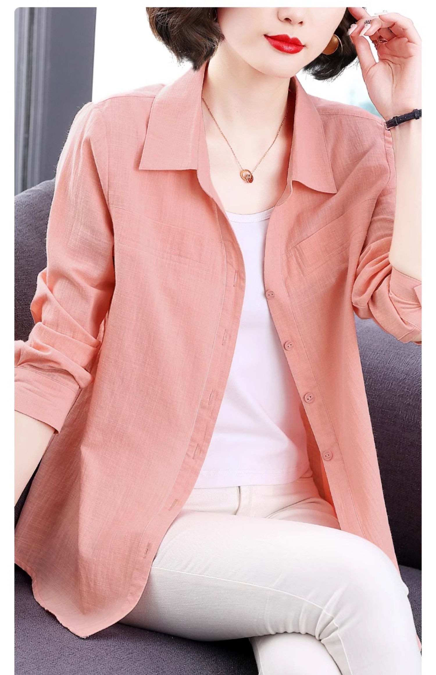 2026年新款秋季纯棉长袖衬衫洋气女装上衣女士全棉衬衣外套高级感