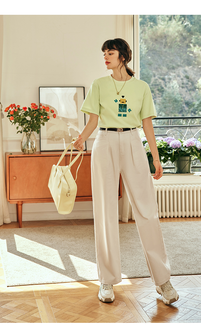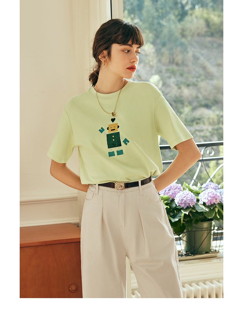 OLrain欧芮儿法式短袖T恤女春季2023新款宽松重工珠片绣休闲上衣