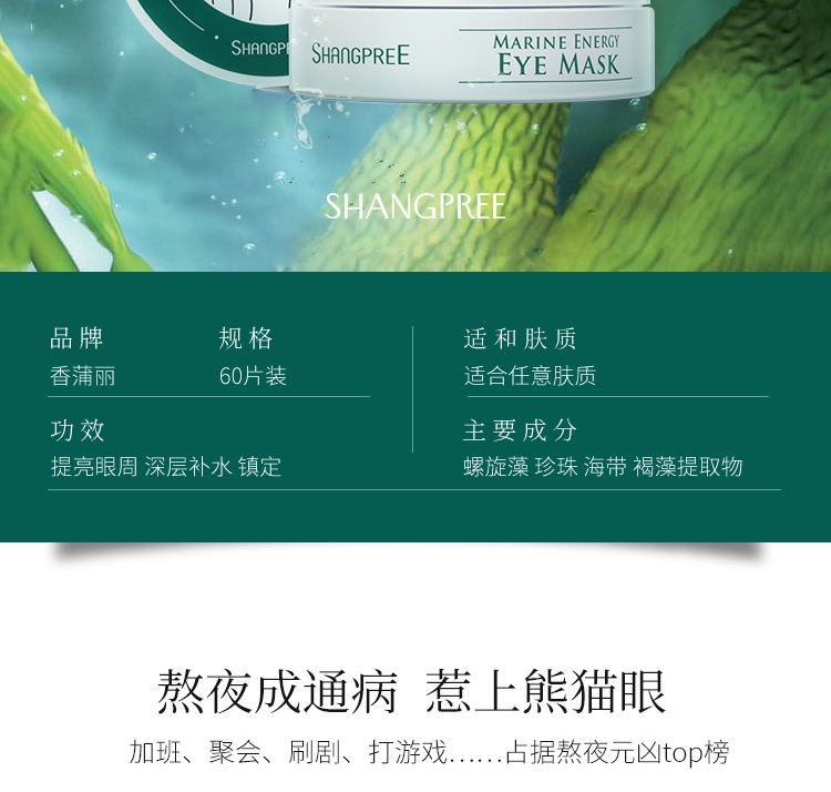 香蒲丽海洋水光绿眼膜贴60片