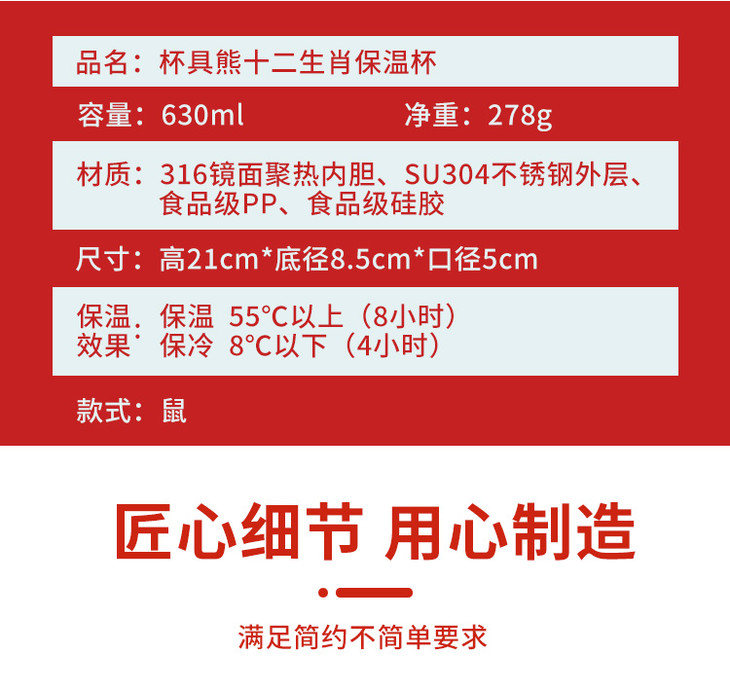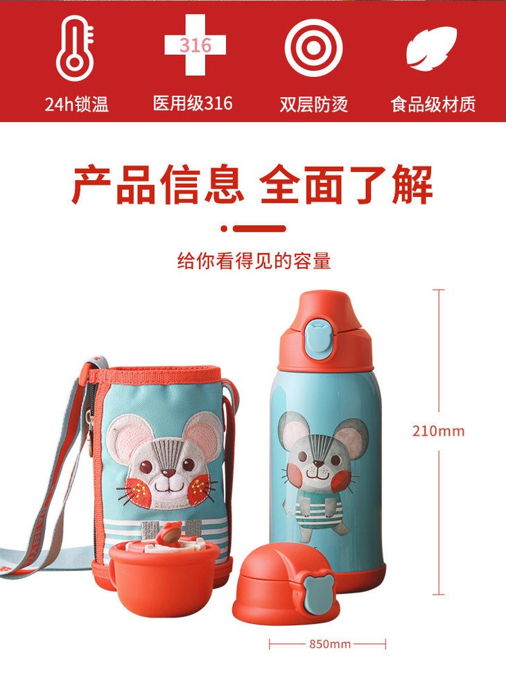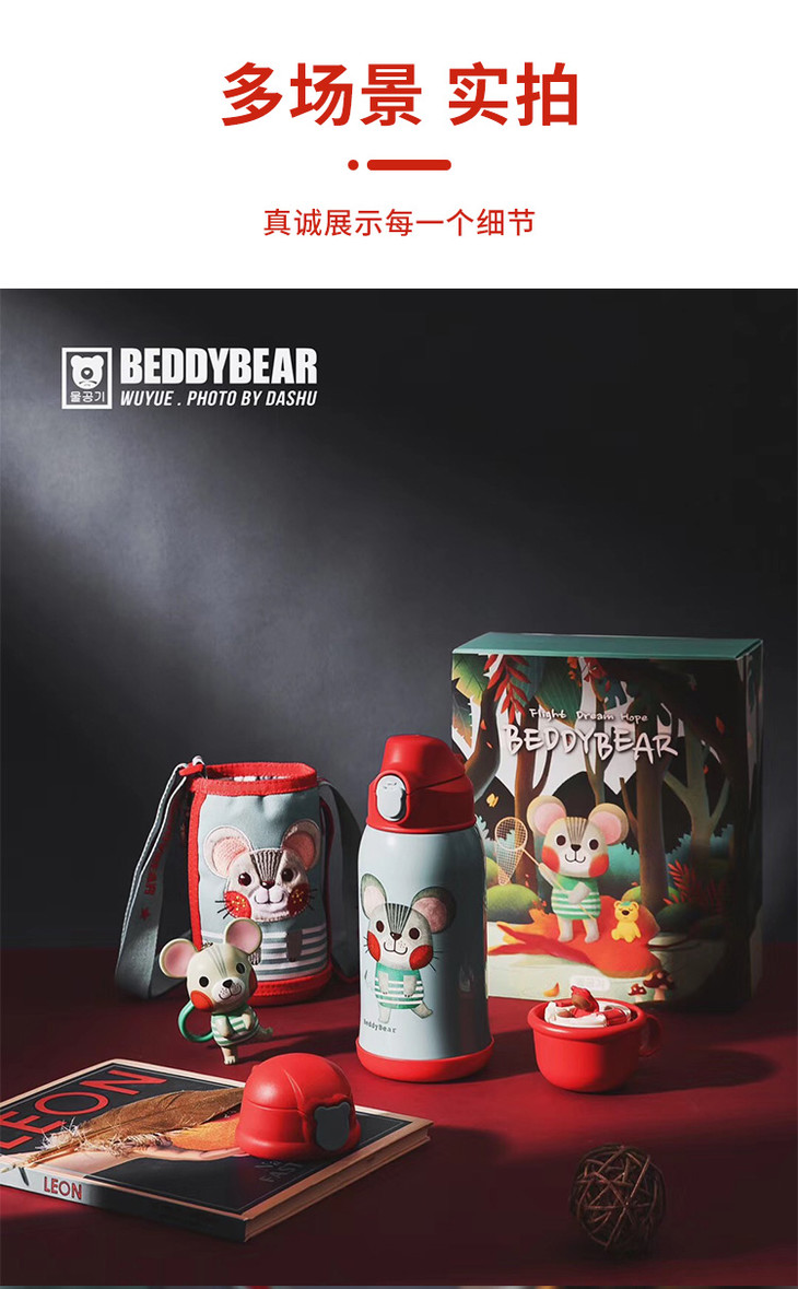 杯具熊儿童保温杯带吸管水杯男女婴幼儿园宝宝小学生水壶礼盒鼠630MLJPY带授权招加盟代理