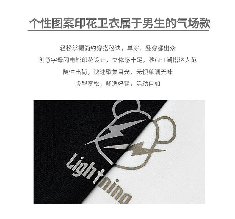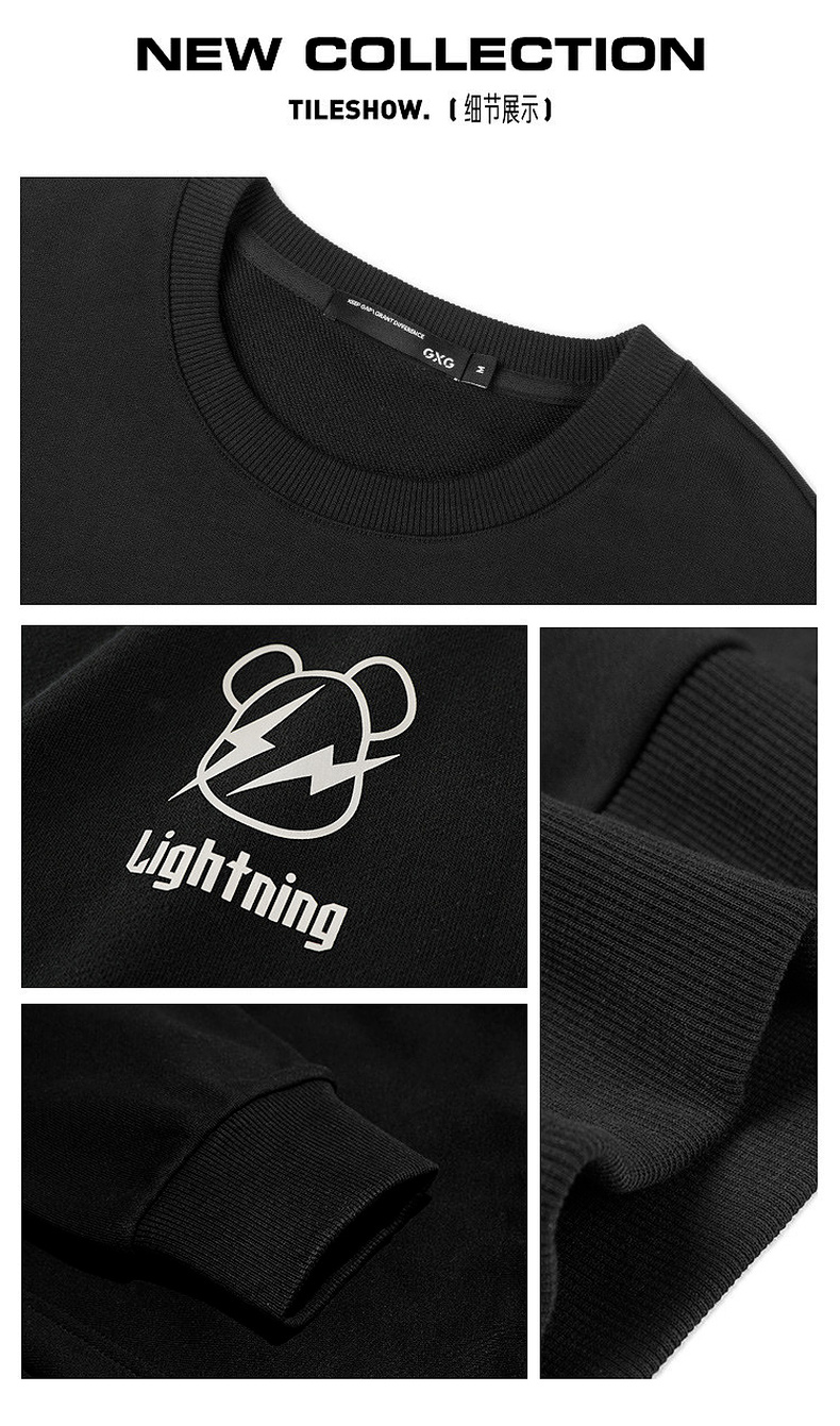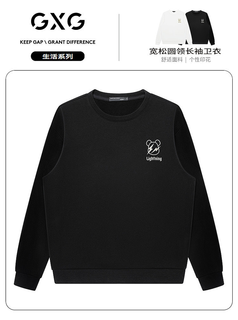 GXG男装秋季卡通小熊印花男士舒适纯棉圆领卫衣K&C