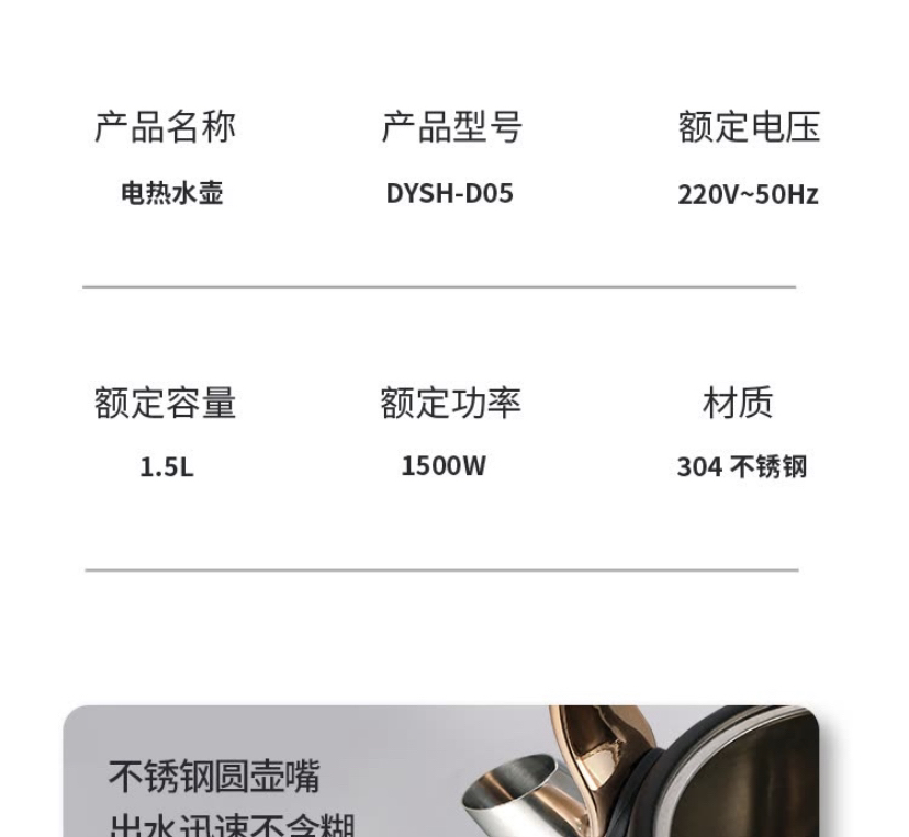大宇(DAEWOO) 复古家用宿舍电热水壶开水壶智能热水壶DYSH-D05